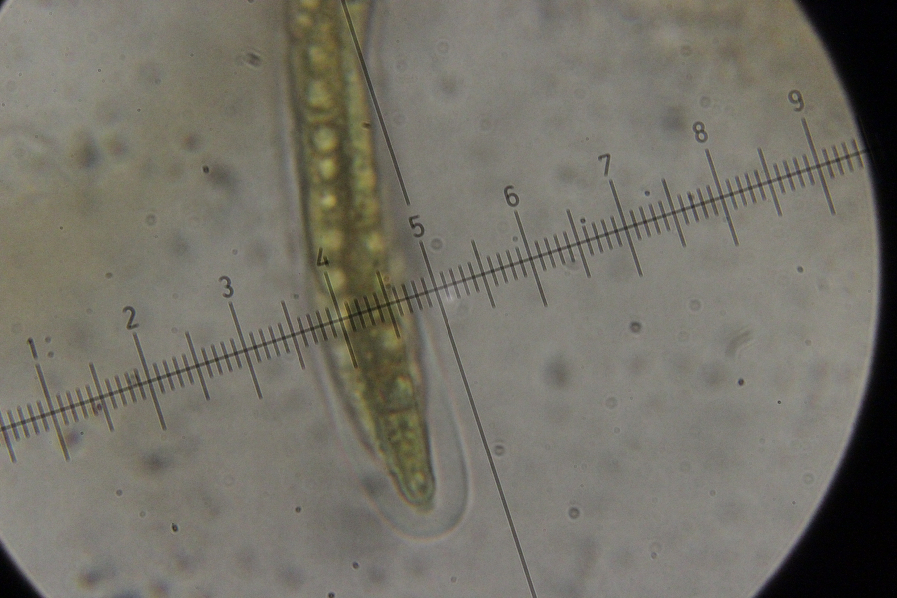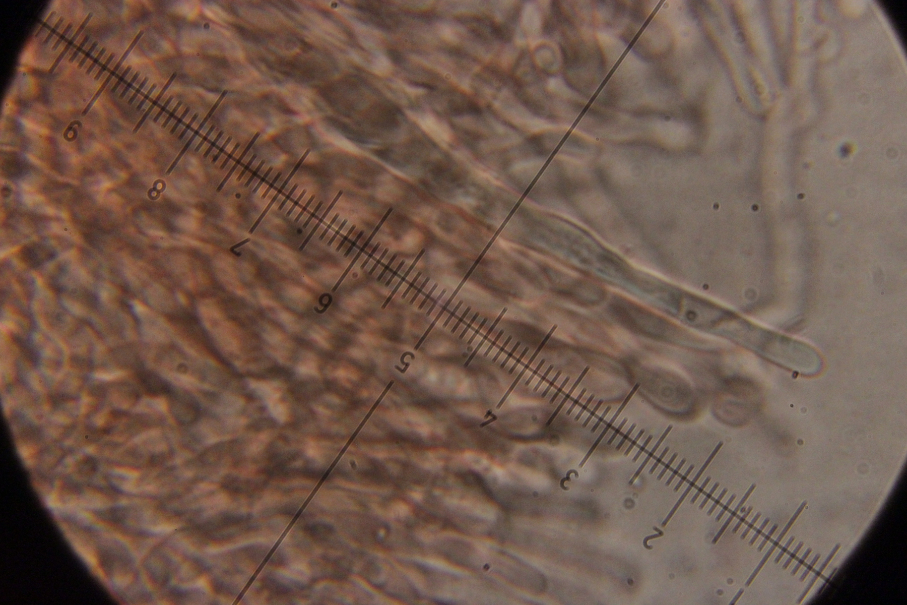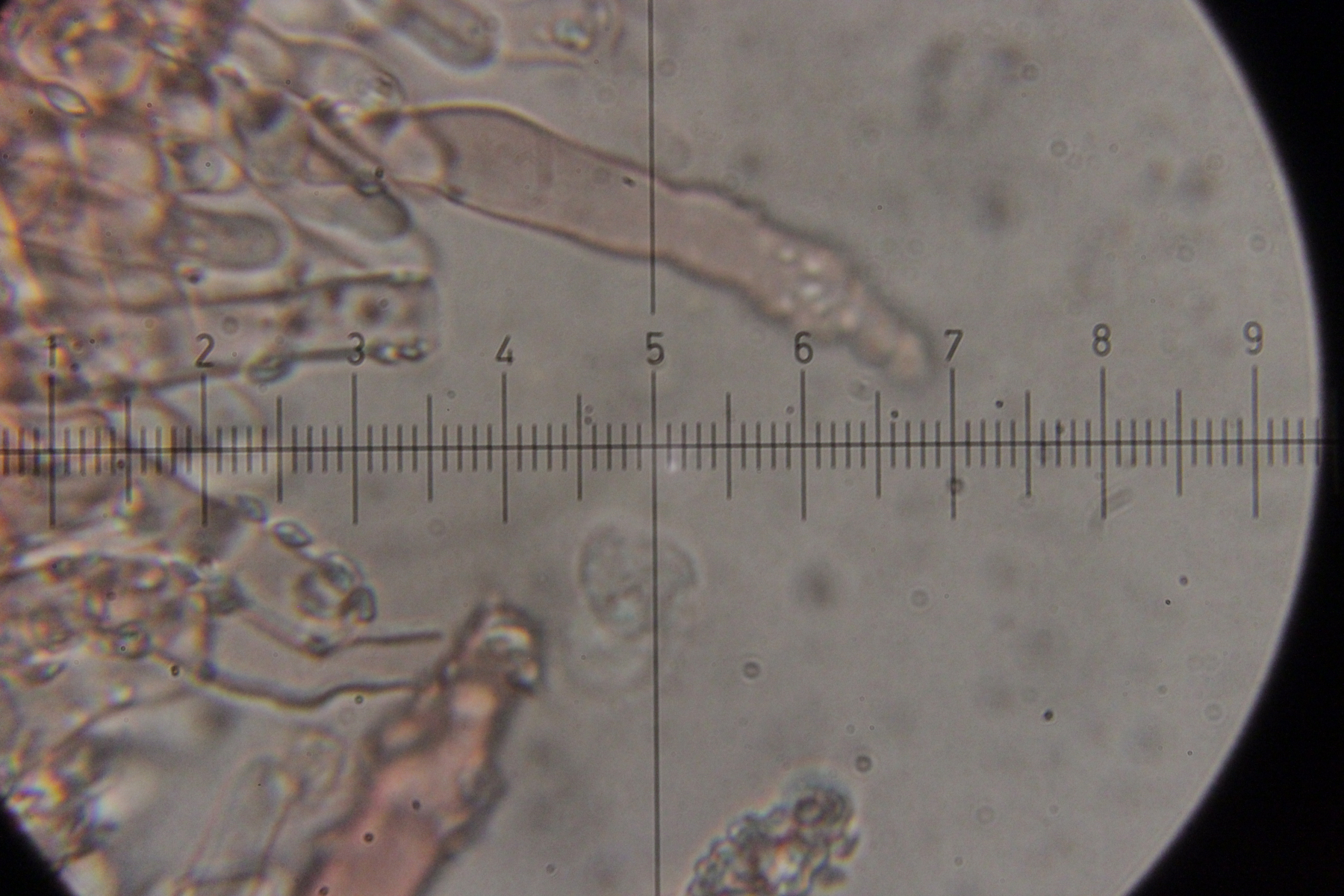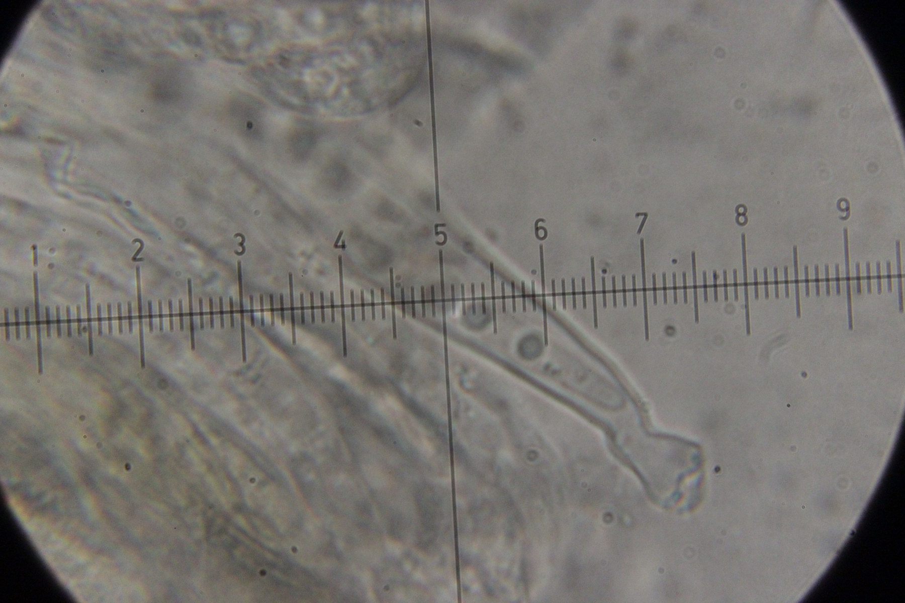 Noch mehr Zystiden. Auffällig, daß der untere Teil oft verdickt war, gefolgt von einer oberen, dünneren Spitze