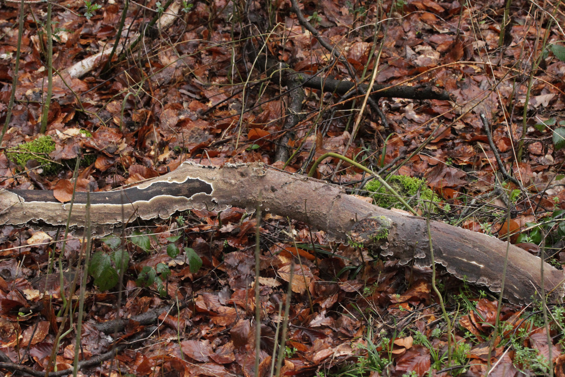 3. Porostereum spadiceum. Ein echter Kaventsmann, der den Ast auf einer Länge von bestimmt einem Meter bedeckte. So kniete ich mich dann auch voller Vorfreude nieder um den Pilz abzulichten, um dann einen unangenehmen Geruch in meiner Nase zu bemerken. Ich hatte mich doch nicht etwa in Hundescheiße gekniet? Das zum Glück nicht, aber ich war wohl vorher reingetreten ![]()