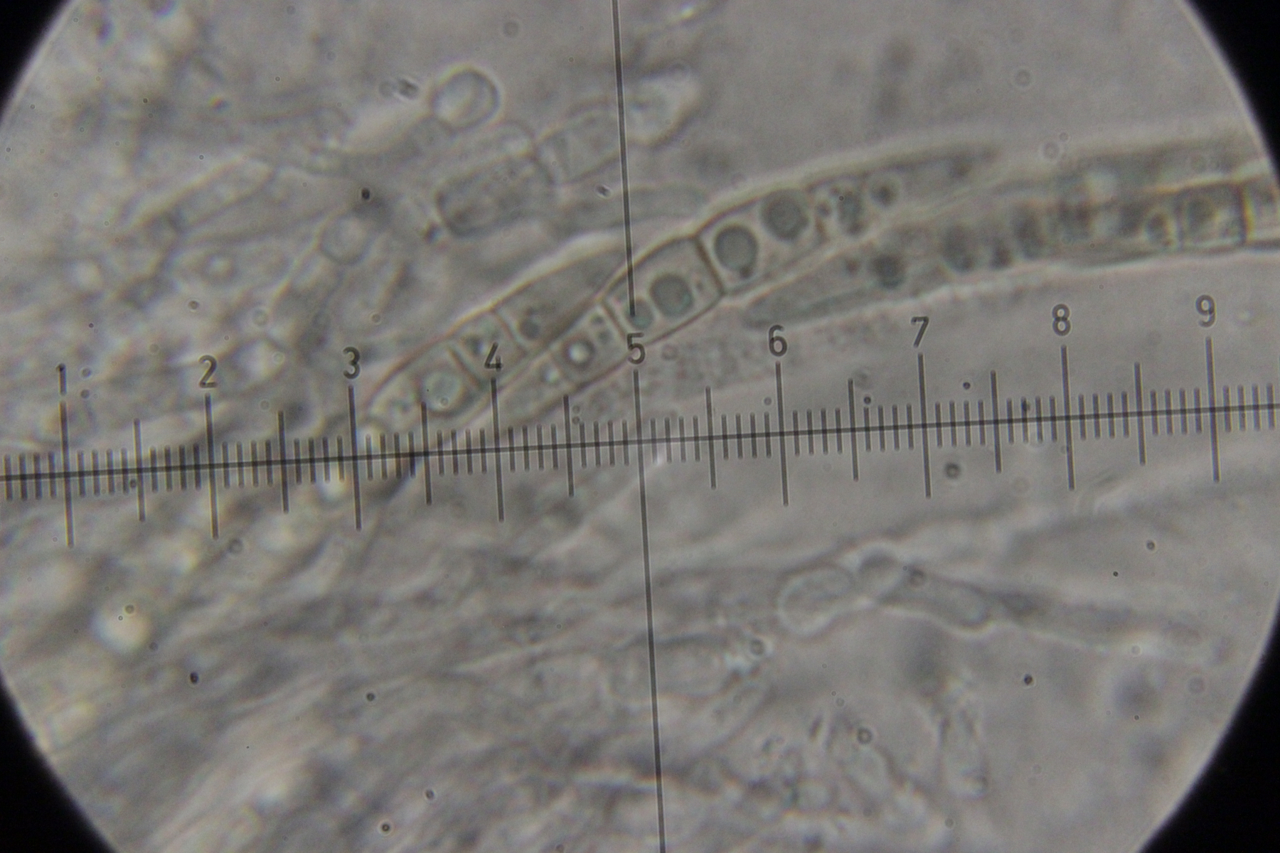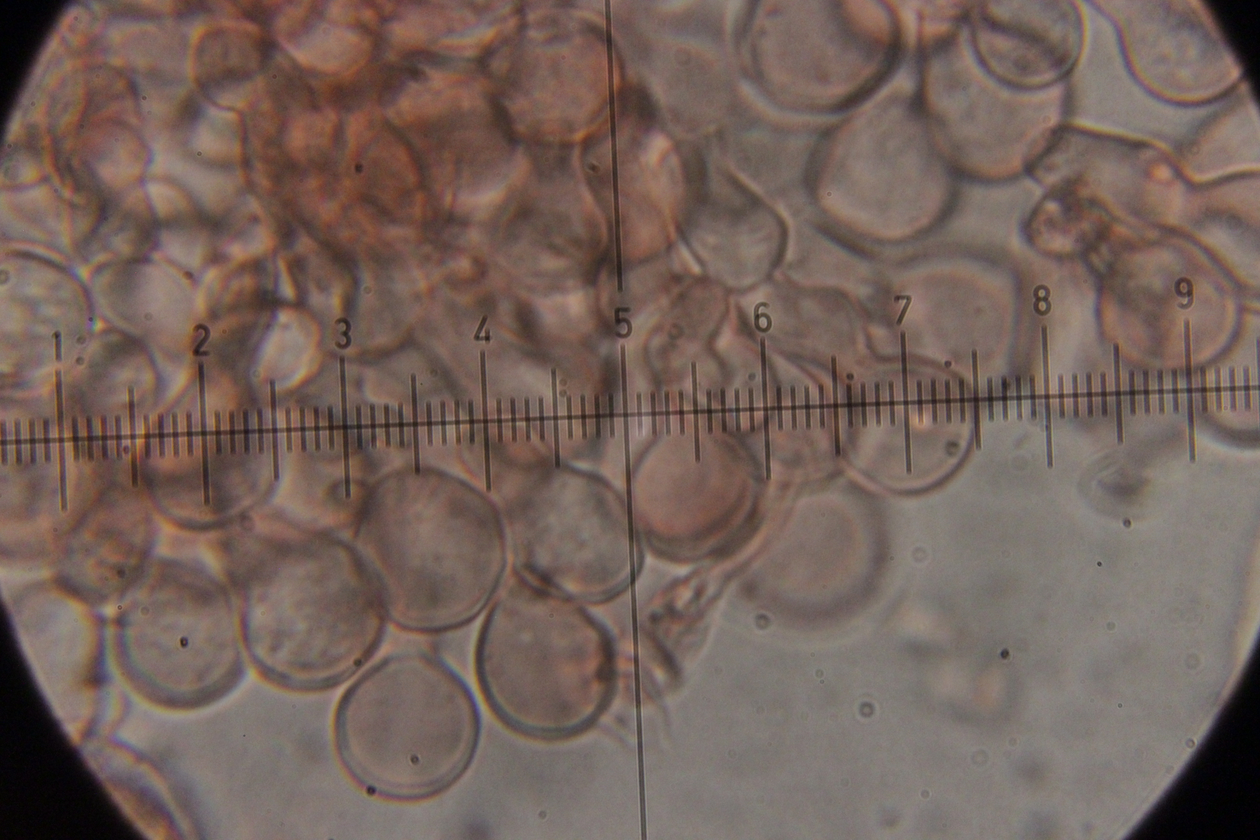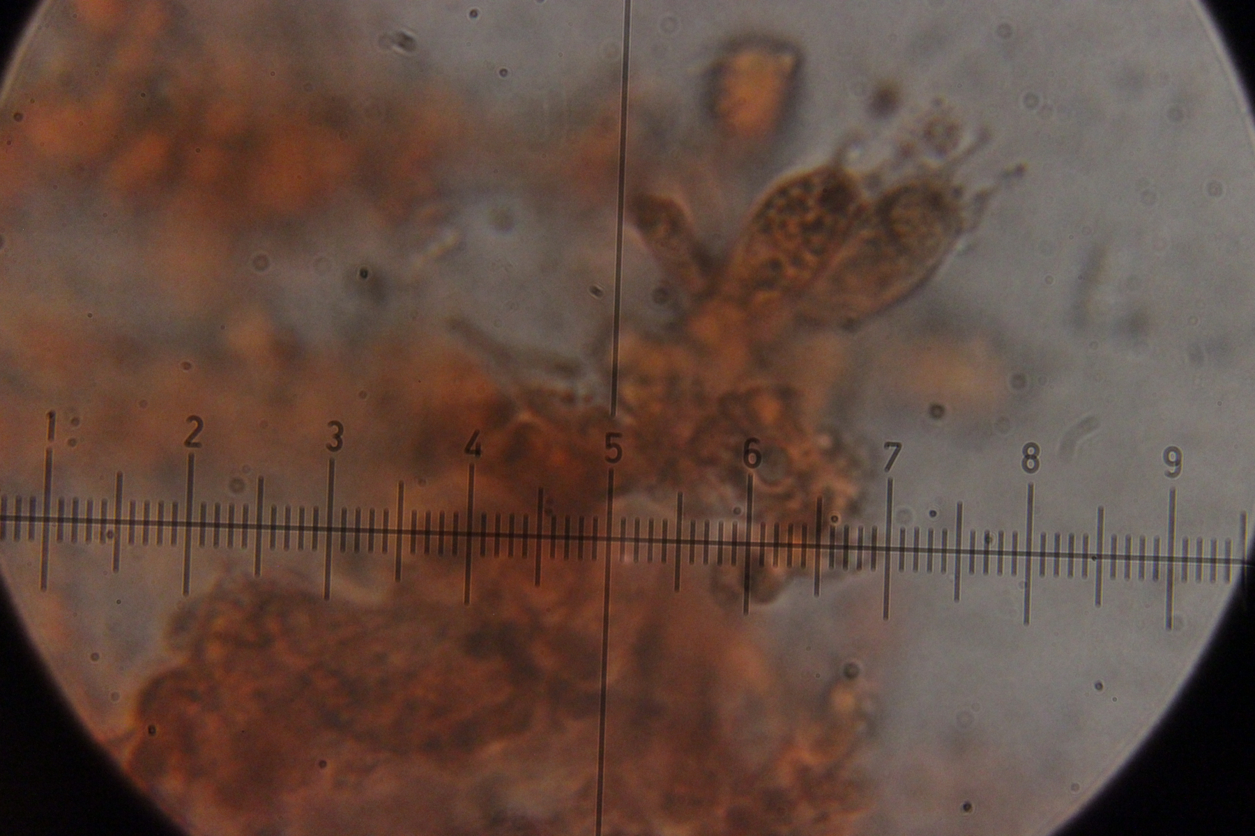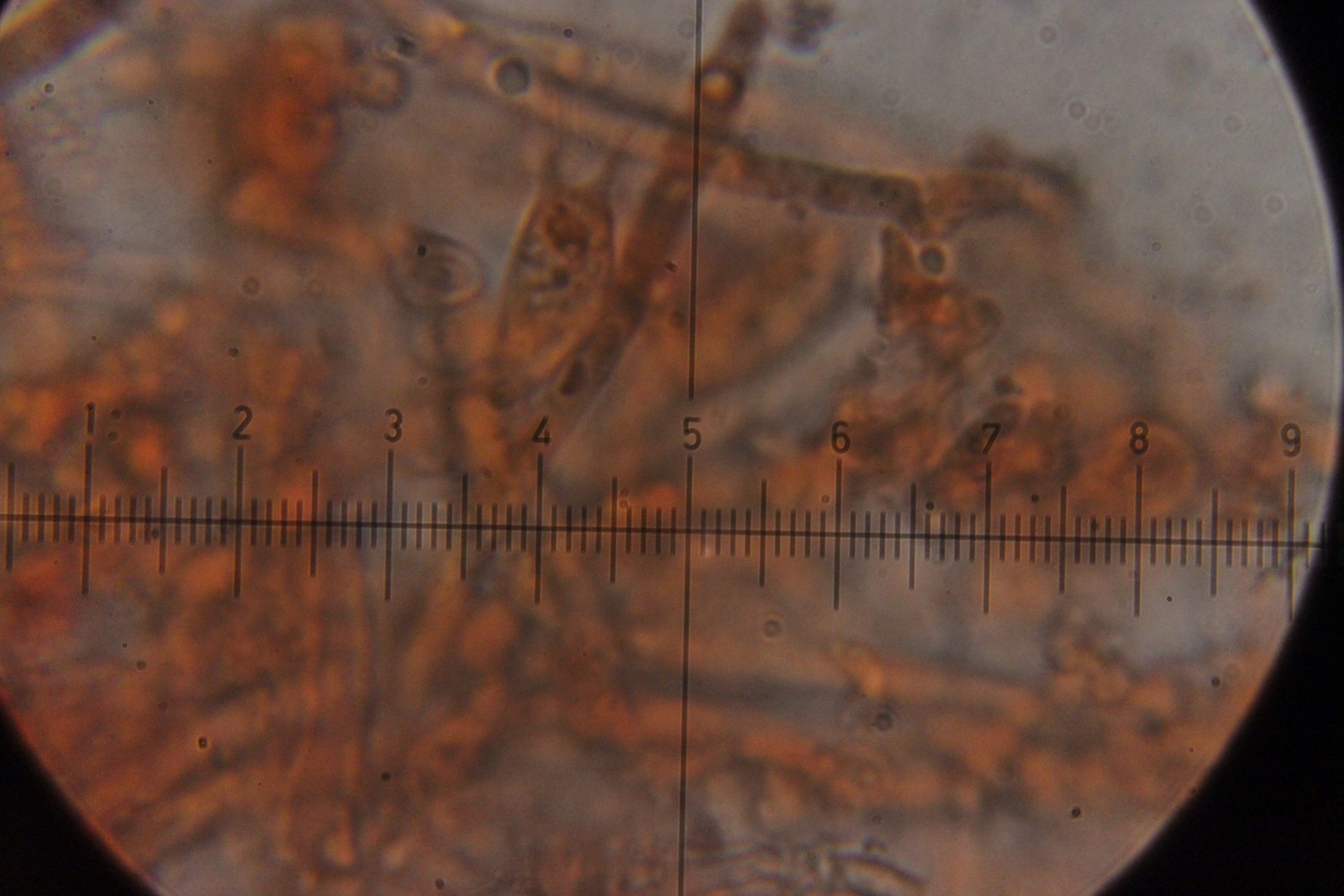 Sporen. Ob die aber zum Pilz gehören, kann ich nicht sagen, da ich an den Basidien keine Sporen gefunden habe