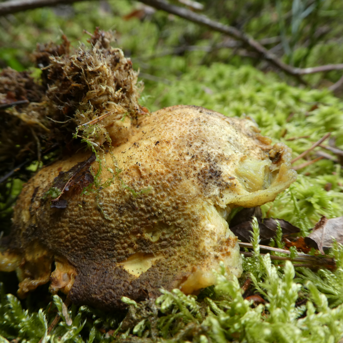 Gestern überlegte ich, was dies sein könnte. Mein Begleiter meinte evtl. alte Röhrlinge. Ich denke aber, dass dies doch keine Röhrlinge sind - oder doch? Eigentlich tippe ich eher so in Richtung Becherling. Kann man trotz des Zustandes der Pilze noch etwas sagen? Sorry, aber irgendwie haben mich die Teile gestern ziemlich fasziniert ![]()