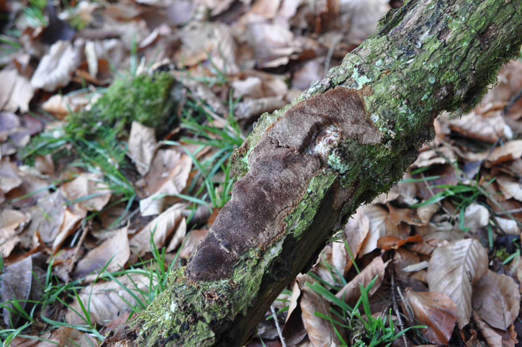 2. An Lebendige bemooste Buche ca 50 cm von Boden oben an Baum , Dezember 2014 . An zweites Bild ist etwas an Volva ähnlich zu sehen oder ? Volvariella ??