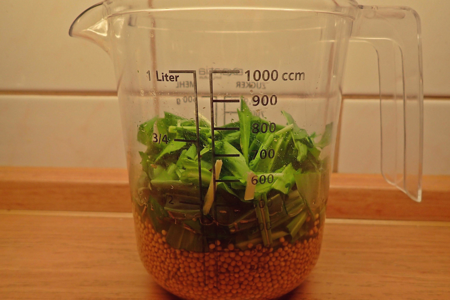 Alle Zutaten 24 Stunden eingeweicht, dann den Bärlauch zugegeben.
