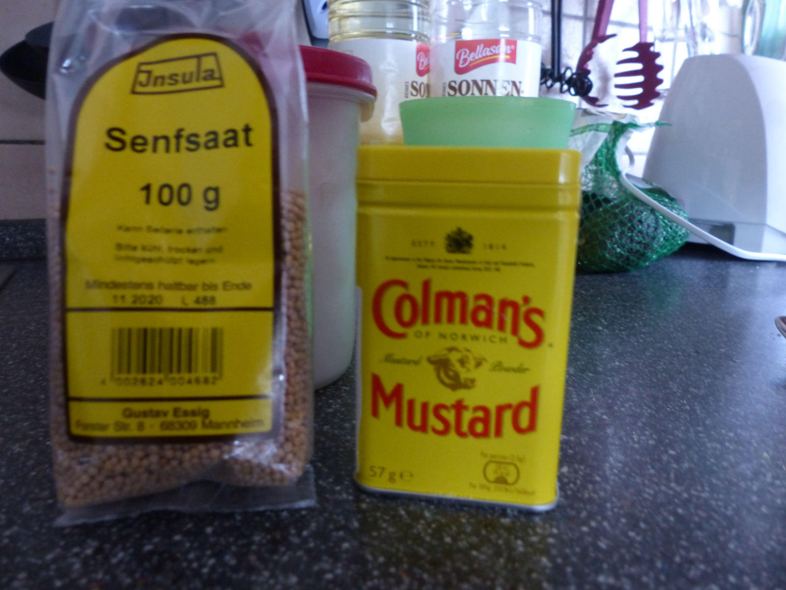 Dann Senfsaat gemahlen oder als Körner.