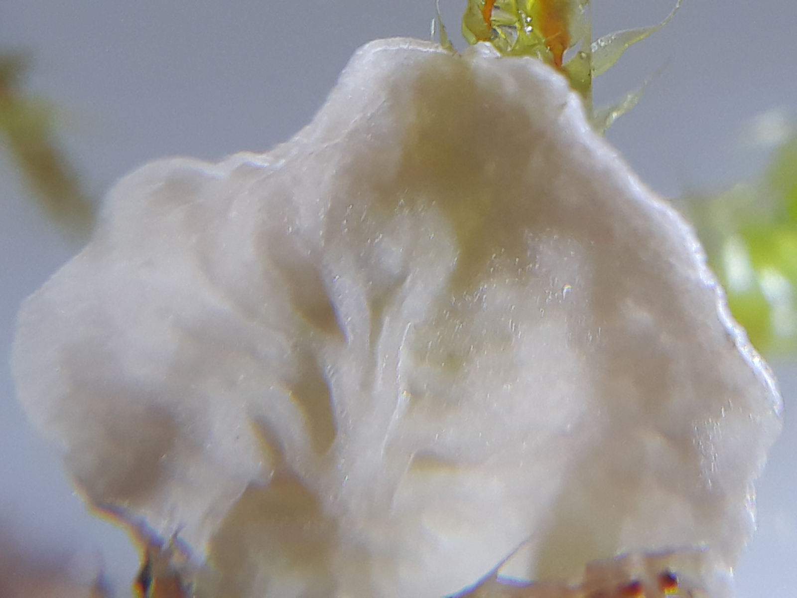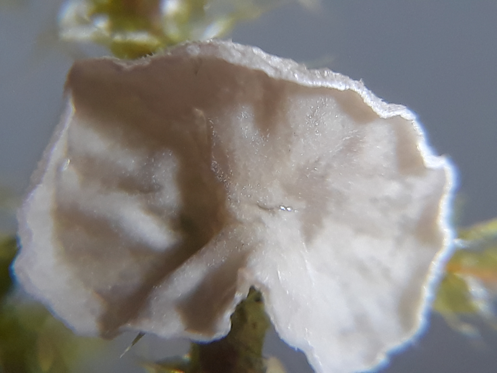 Könnte es sich um den blassen adermoosling handeln oder bin ich komplett daneben? Größe der pilze von 2-6mm, die hier gezeigten sind ca 6mm, ungestielt, extrem dünn und wachsen direkt am moos.