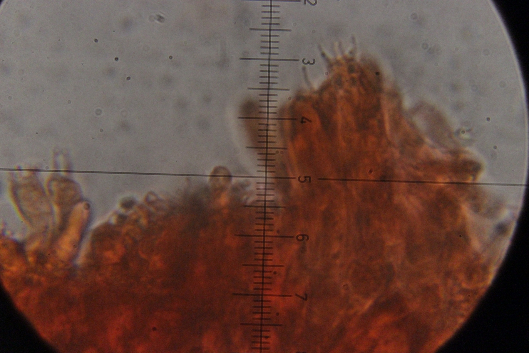 Bei Nr. 12 werde ich noch mal reinschauen. Gibt es da irgendwelche Tricks, wie man so einen Steccherinum unterm Mikro zubereitet? Meiner ist da irgendwie sehr schmockig. Ansonsten was die Farbe angeht, gibt es von Karl bei pilze-deutschland Fotos von S. fimbriatum, die genau meinem Exemplar entsprechen. Aber schauen wir mal, was das Mikro noch so sagt.