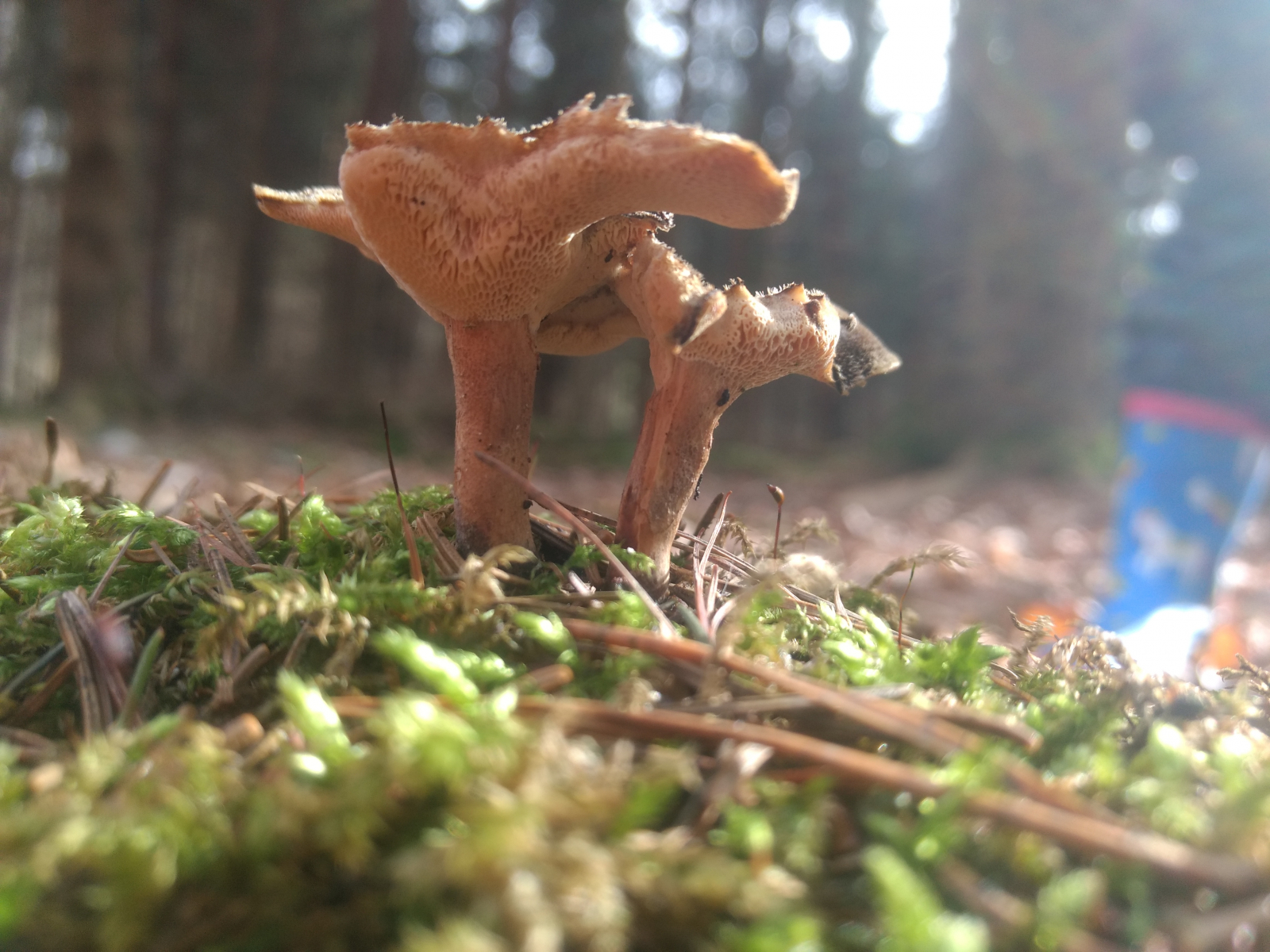 Merci für den hervorragenden Tipp, die zwei waren auf einen alten Ast, ja! Der Ziegenfussporling hätte einen viel dickeren Stiel?