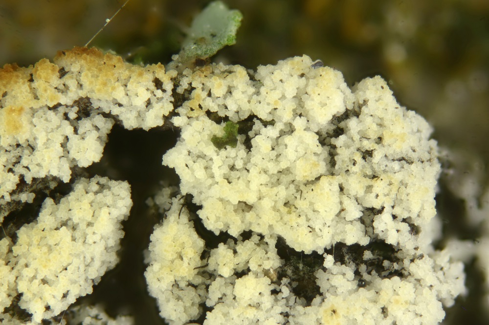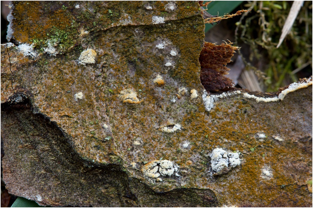 Für mich hat der Pilz Ähnlichkeiten mit den Pilzen, die auf Flechten wachsen, aber es gibt keine Flechte auf der Rinde.