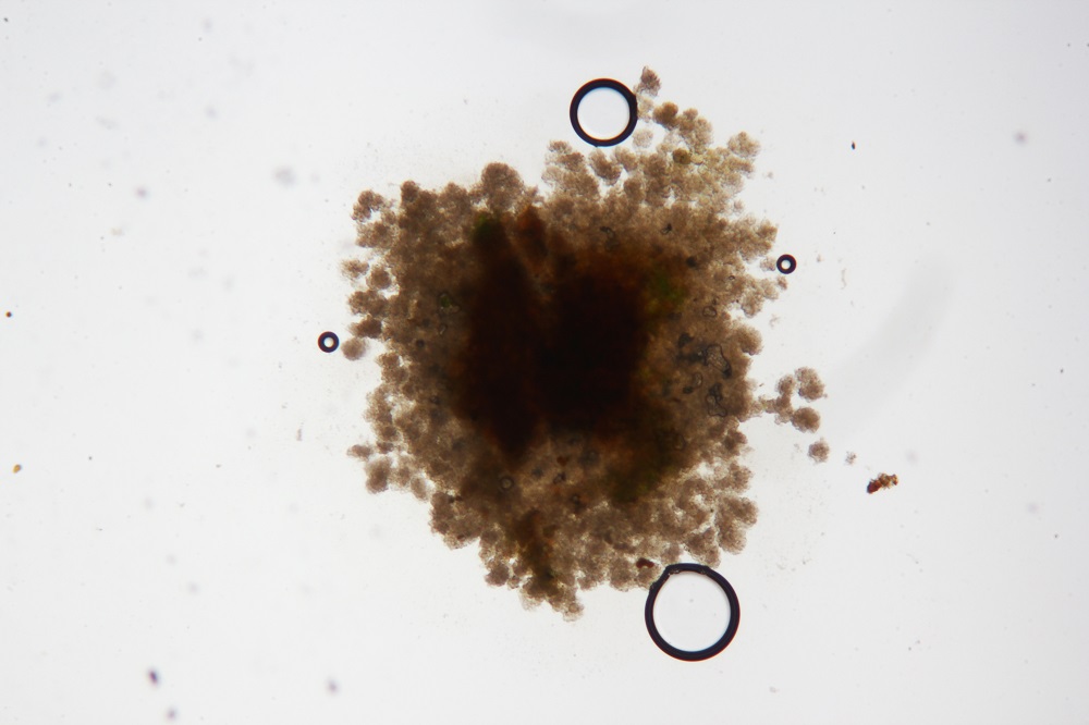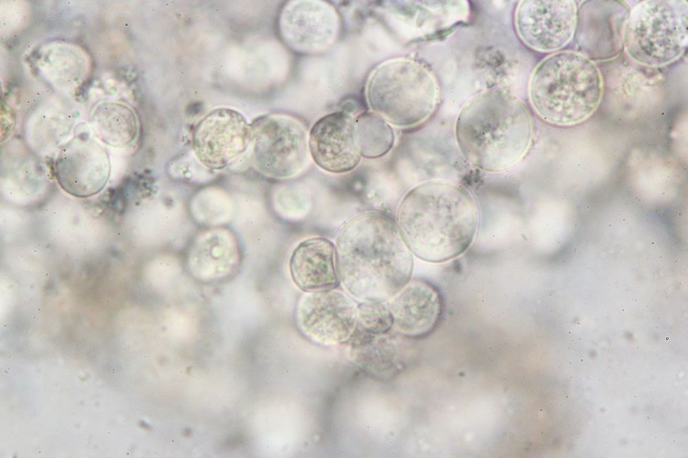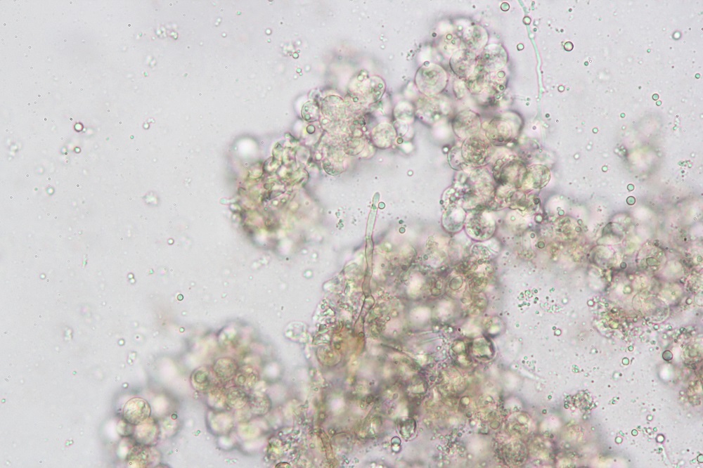 Die Konidien sind im Durchmesser 10-12 Mikrometer groß.