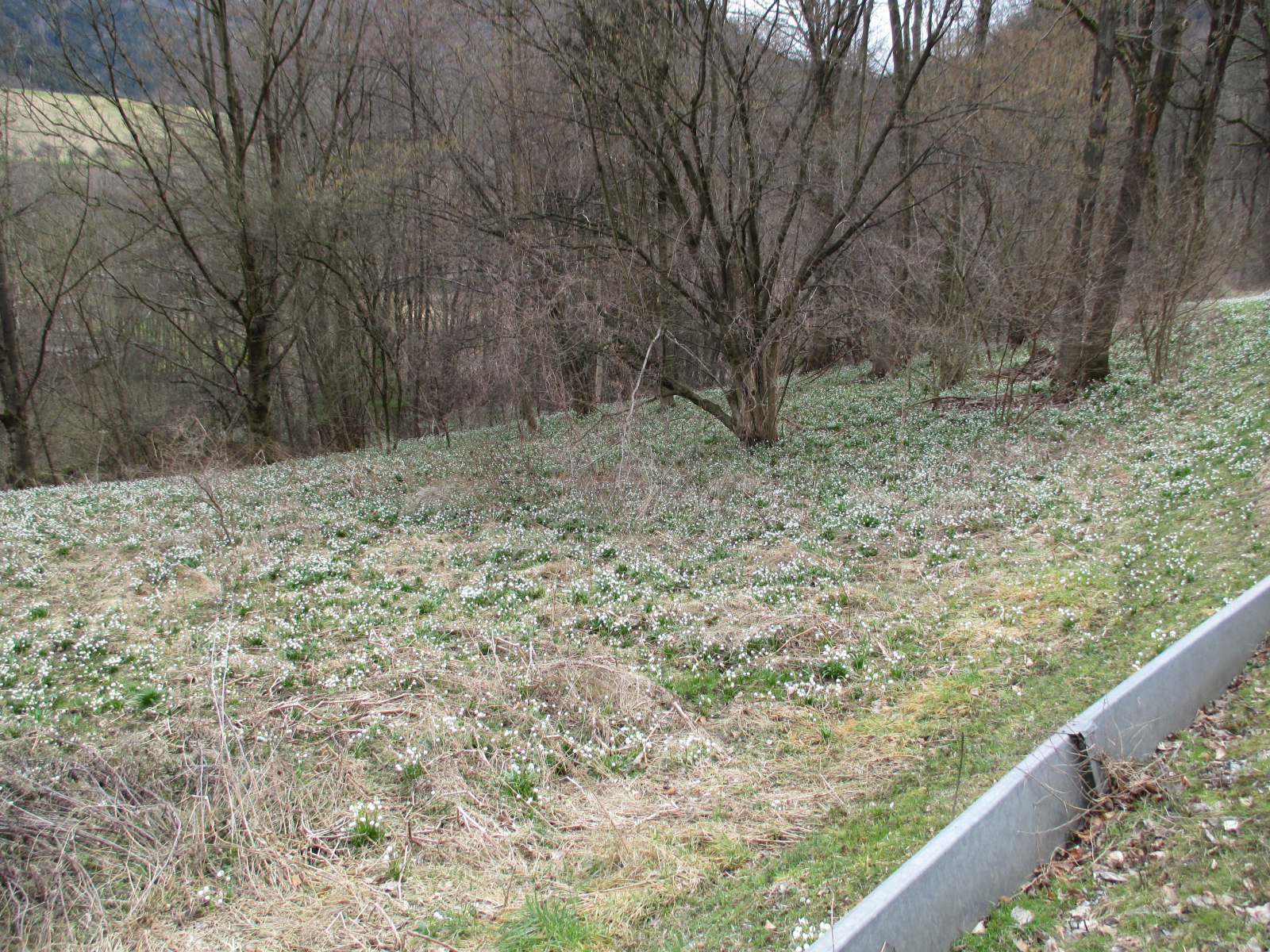 Die sogenannte Schneeglöckchenwiese. Es sind aber keine Schneeglöckchen sondern Frühlingsknotenblumen.