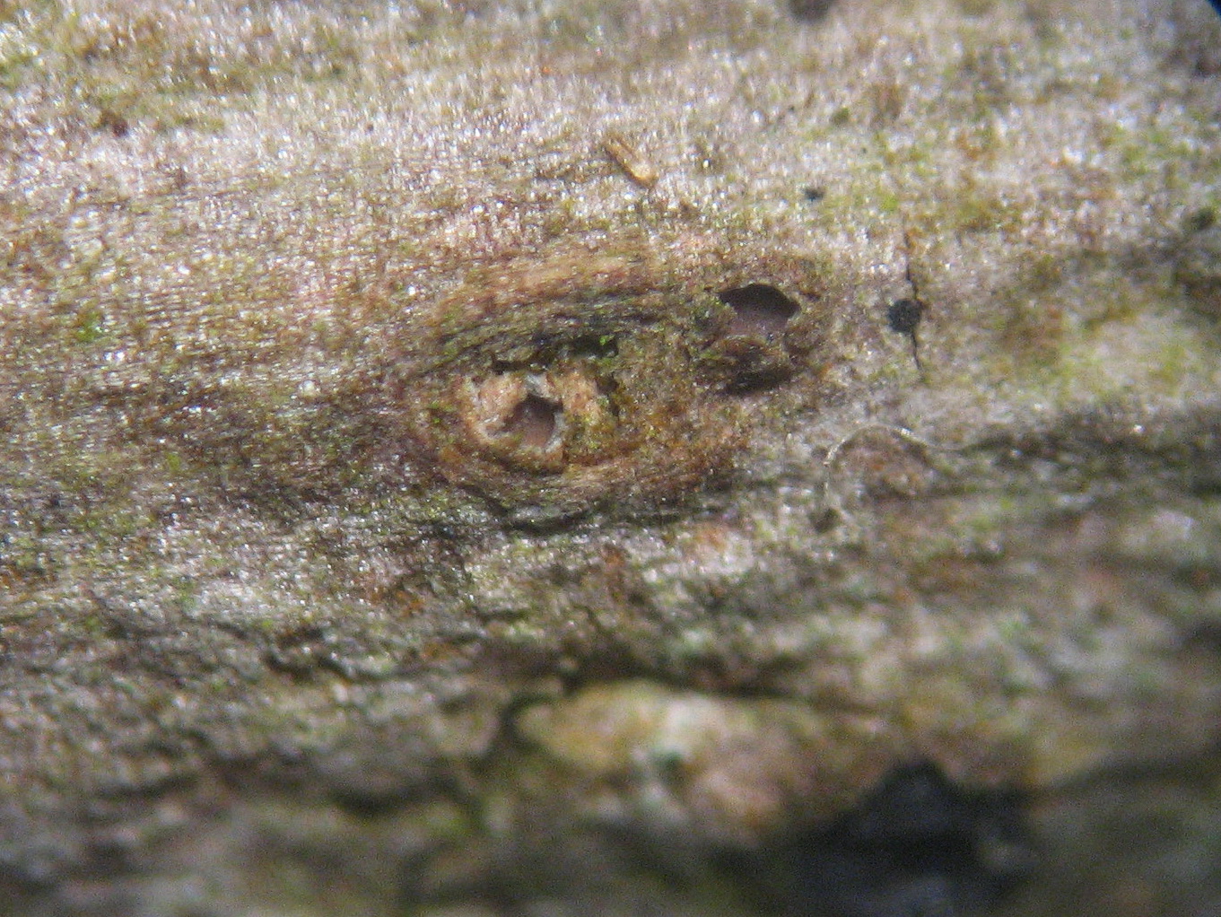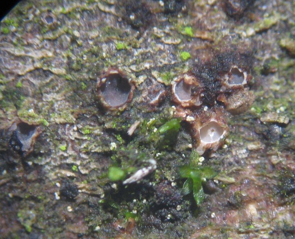 am 11.03.19 fand ich unter der Rinde von einem Malus, einen Ascomyceten der auf dem Namen Karstenia idaei hört.