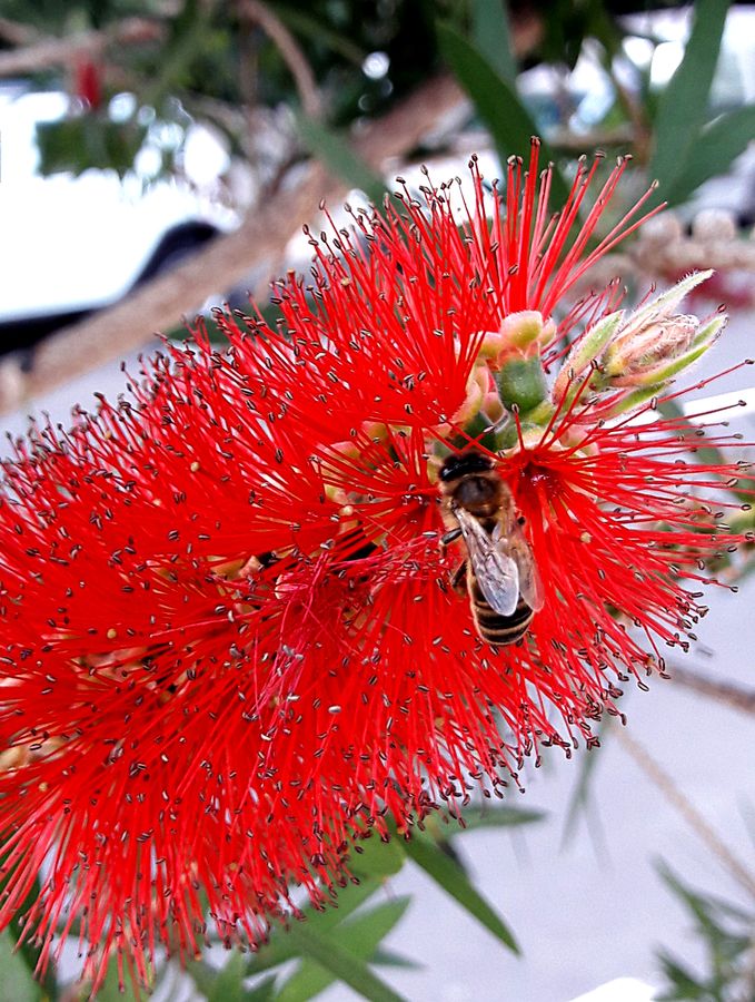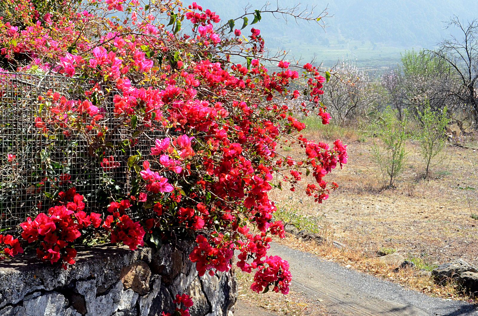 Erste Eindrücke. Die obligatorische Bougainvilleae in klassisch rot...