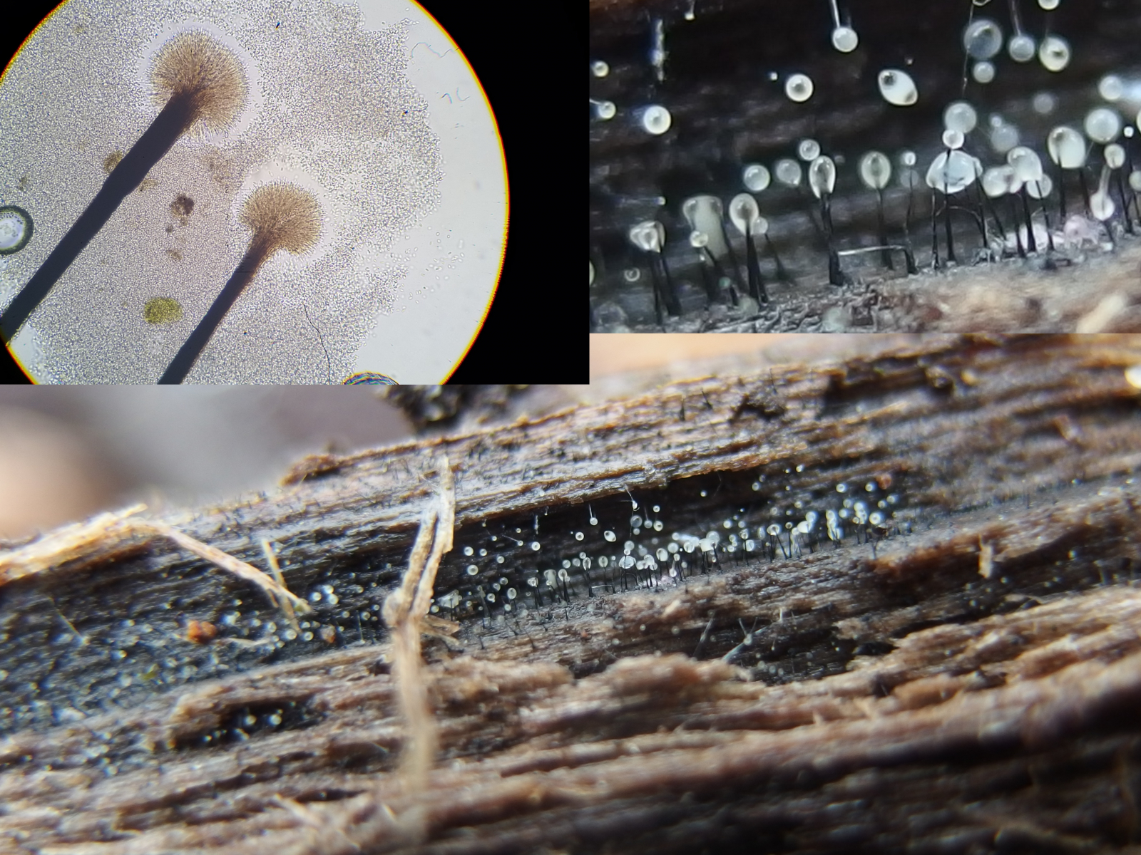 mir kommt es auch bekannt vor und ich meine, dass sowas hier vor Kurzem mal in einem Thread gezeigt wurde (ohne Namen). Vielleicht kommt es mir auch nur deshalb bekannt vor, weil das Ding aussieht wie ein Dictyostelium, z.B. Dictyostelium discoideum, der gerne an Holz vorkommt. Dazu passt aber die Konidiogenese nicht.