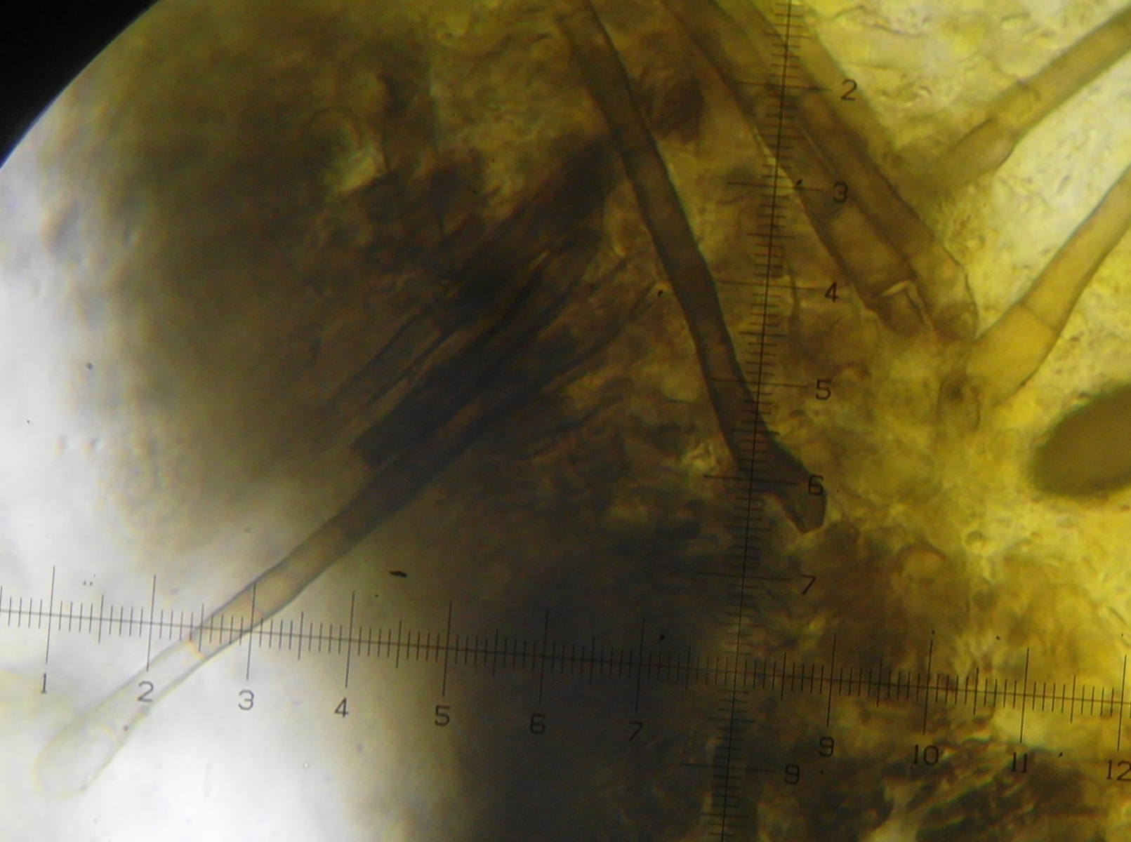 auf Mäusedung den ich auf der gemeinsamen Exkursion mit Florian und Gerhard am 02.03 in der Krelinger Heide eingesammelt hatte wuchs heute (nachdem seit Tagen nur Schizothecium tetrasporum zu sehen war) mal wieder was neues . Ich bin mir nicht ganz sicher ob es eine Arnium oder eine Podospora ist. Jedenfalls besitzt der Pilz braune septierte Haare die man auch schon unter der Stereolupe sehen konnte .
