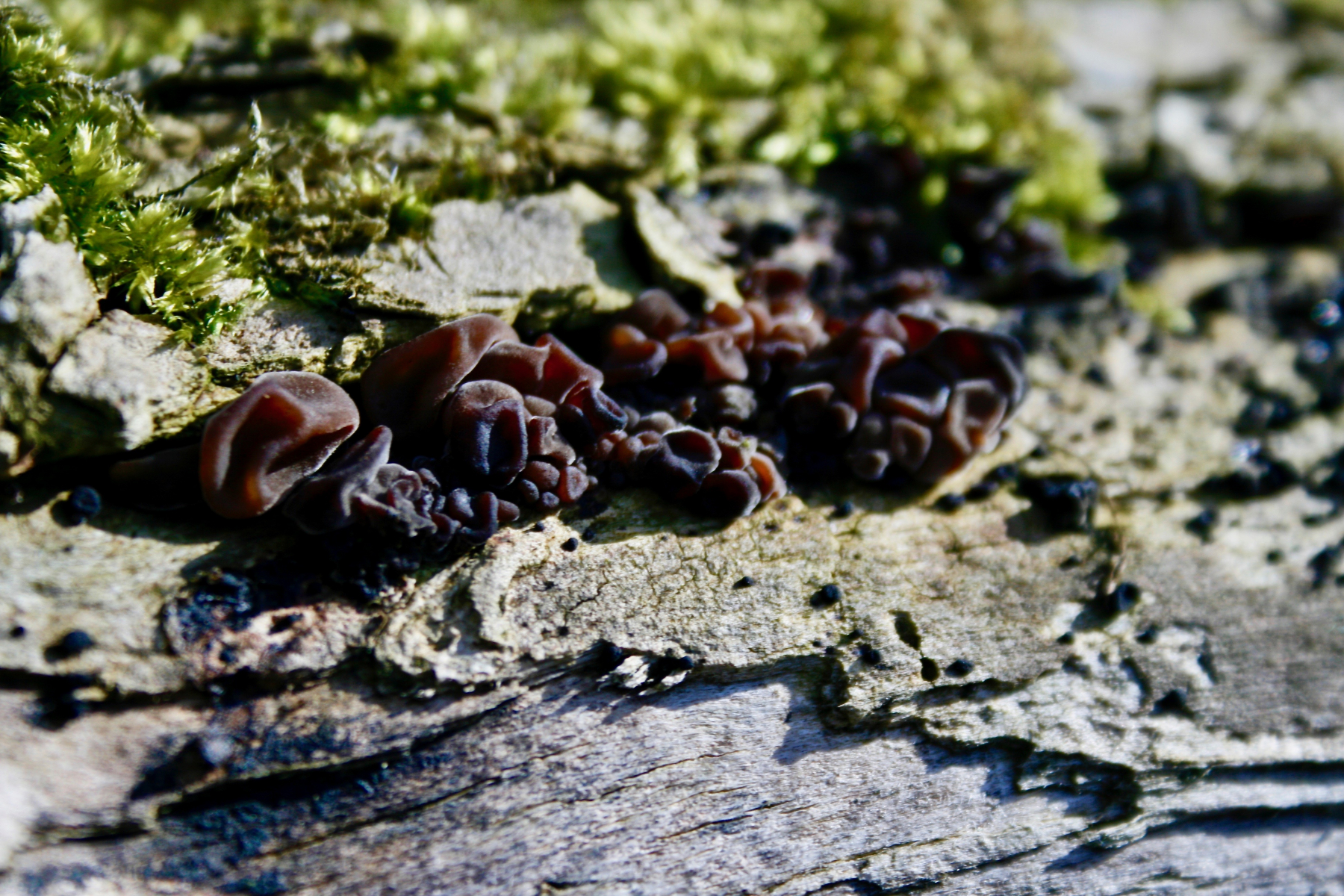 6 und dieser Pilz vermutlich auf Eiche. Vermutlich einer aus der Gallertecke. Sicher kennt jemand von euch seinen Namen. Ein bisschen kam er mir vor wie die Würzigen Drüslinge. Aber er war nicht schwarz sondern dunkelbraun und etwas anders strukturiert.