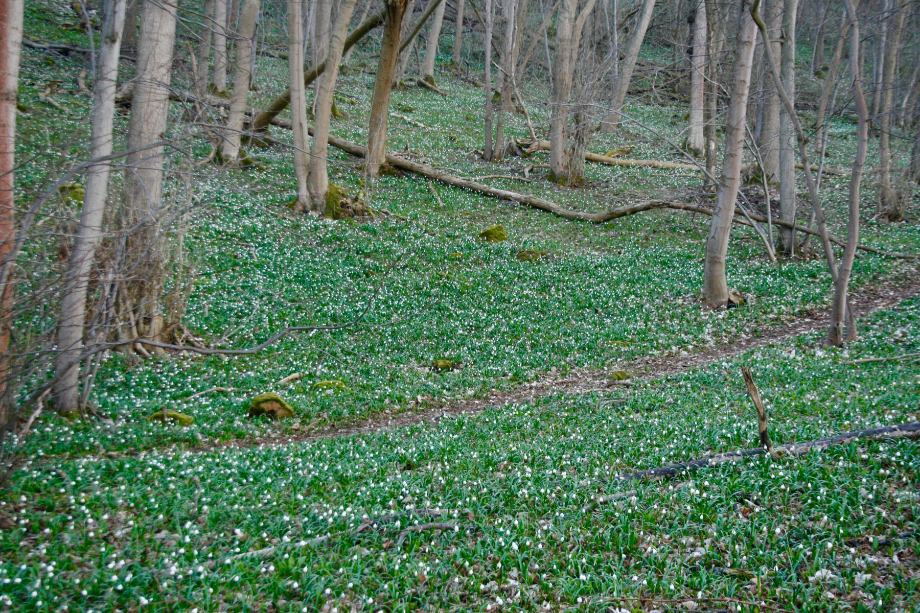 8 An den nördlichen Hängen des Mühlberges unterhalb der Mühlburg wachsen die Märzenbecher kilometerweit. Diese Mengen sind schier unglaublich. .