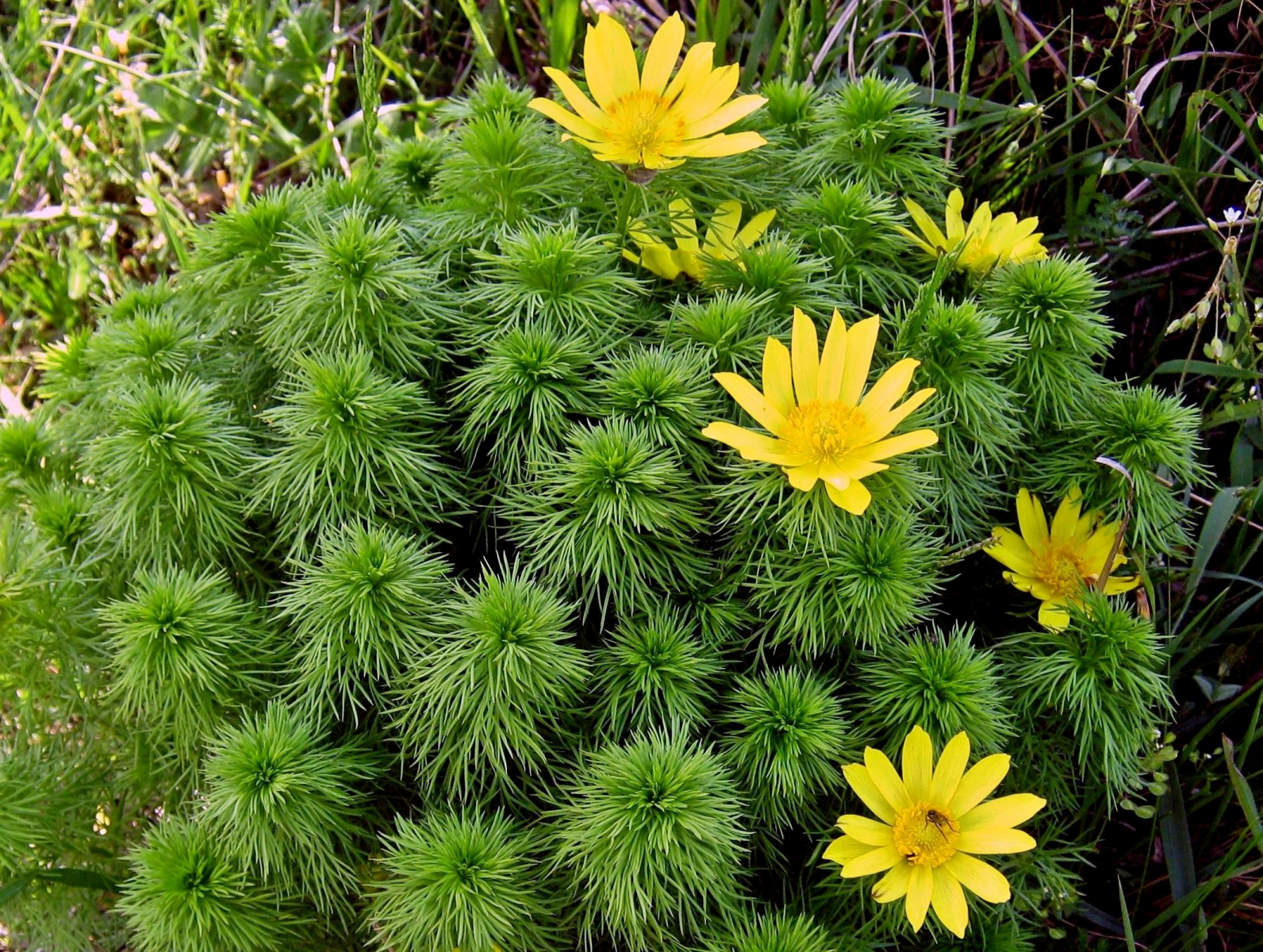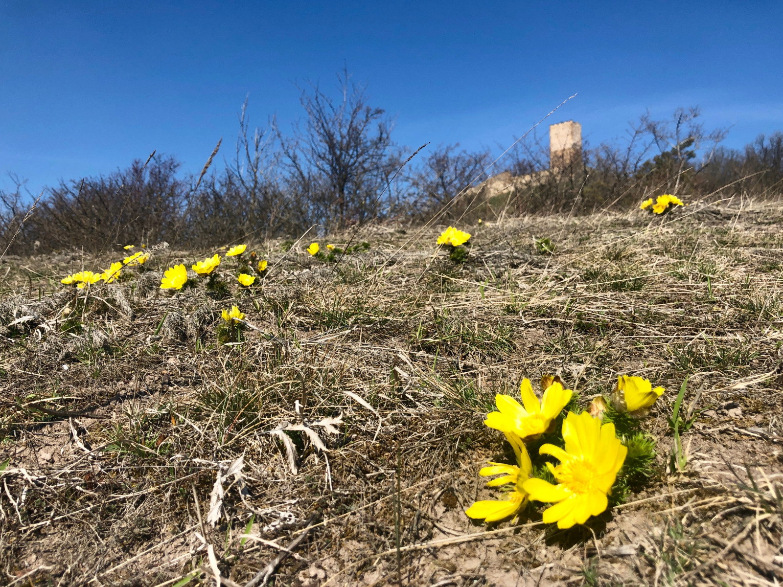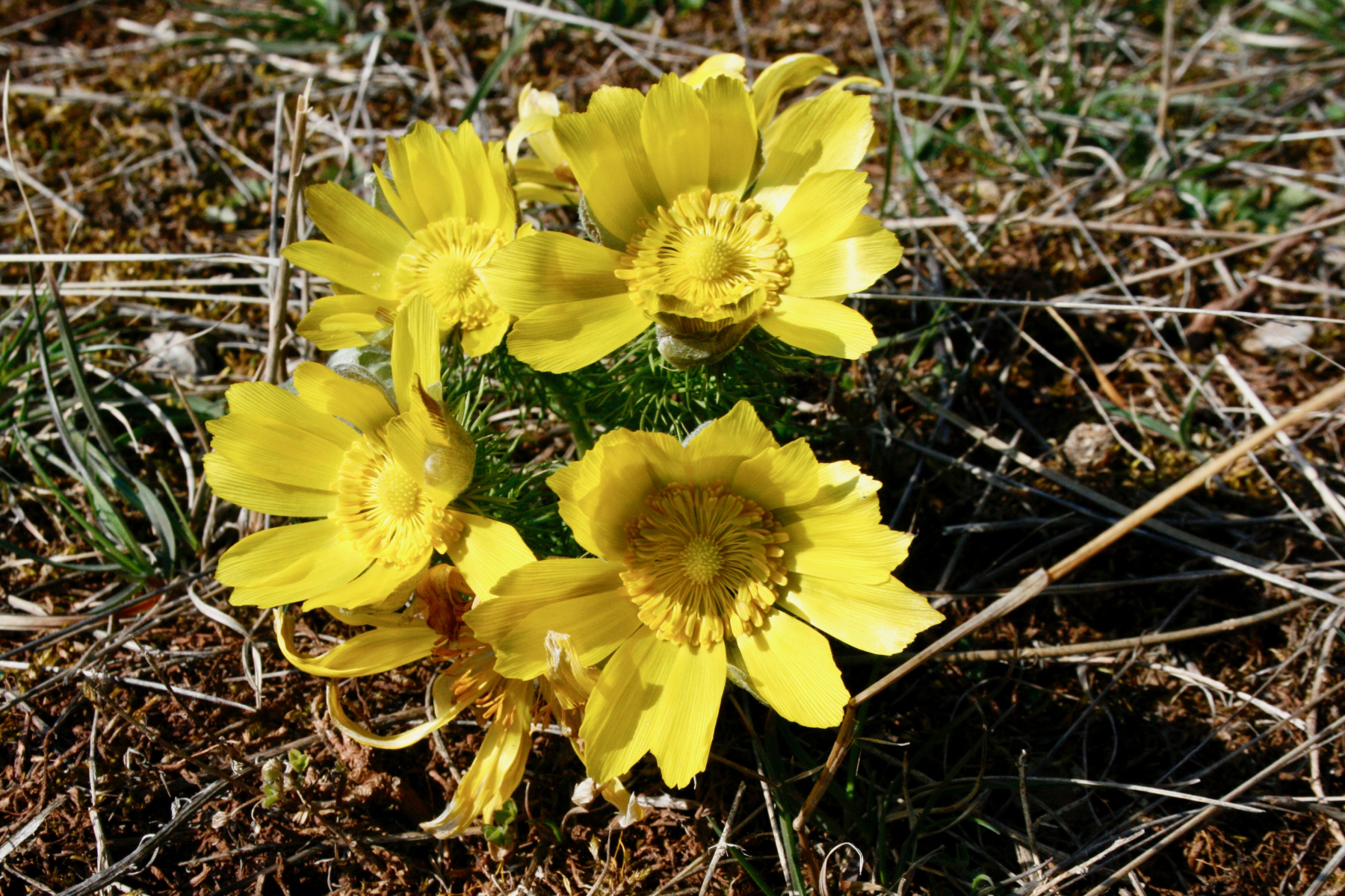 1 Ein ganzer Hang voller Adonisröschen. Sie machen ihrem Namen alle Ehre und wenn jedes Mal wenn ich diese kleinen Sonnen sehe, bin ich hin und weg. Dieser ein Anblick macht einfach gute Laune - den ganzen Tag und darüber hinaus.