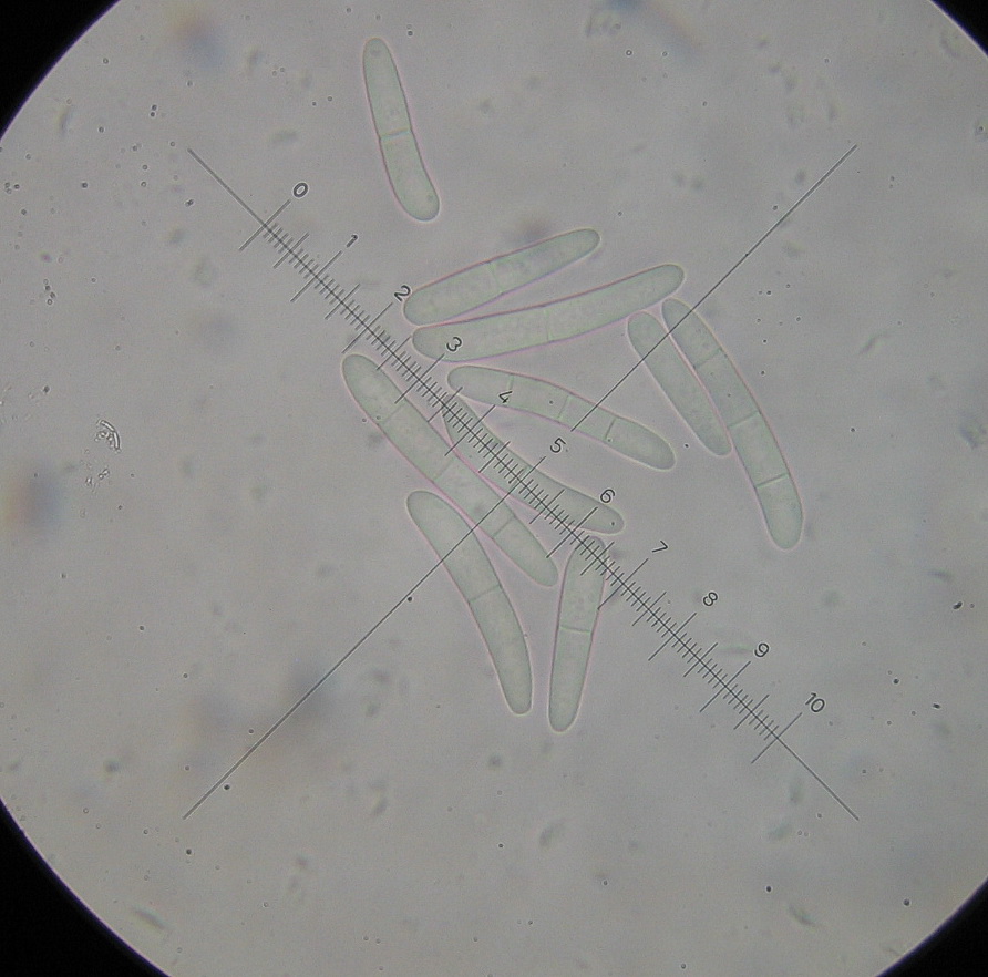 reife Konidien 3 x septiert, 35-44 x 5-6µ, glatt; sonst 25-35 x 4-5-6µ 0-2 x septiert