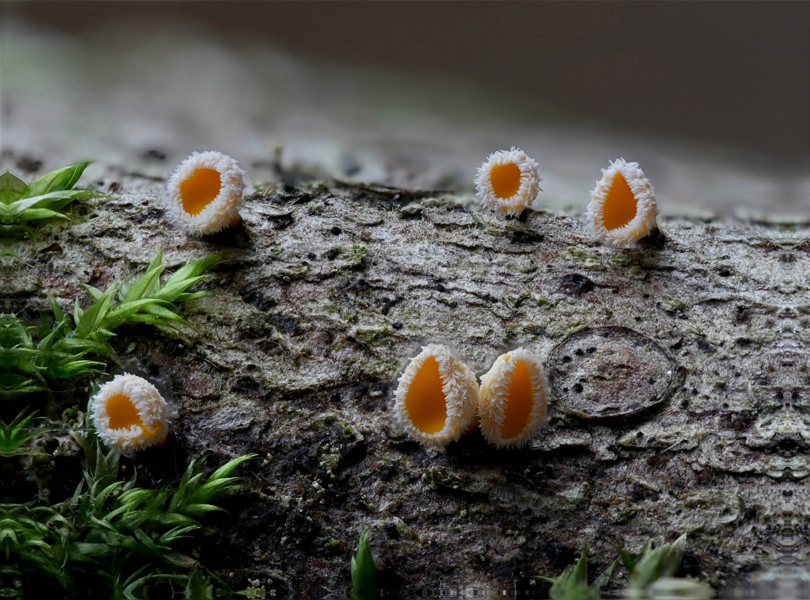 Das Weißtannen-Haarbecherchen (Lachnellula subtilissima) konnten wir am 2.3. noch in gut beschatteten Reisighaufen finden. Gestern gab es nur noch Exsikkate.