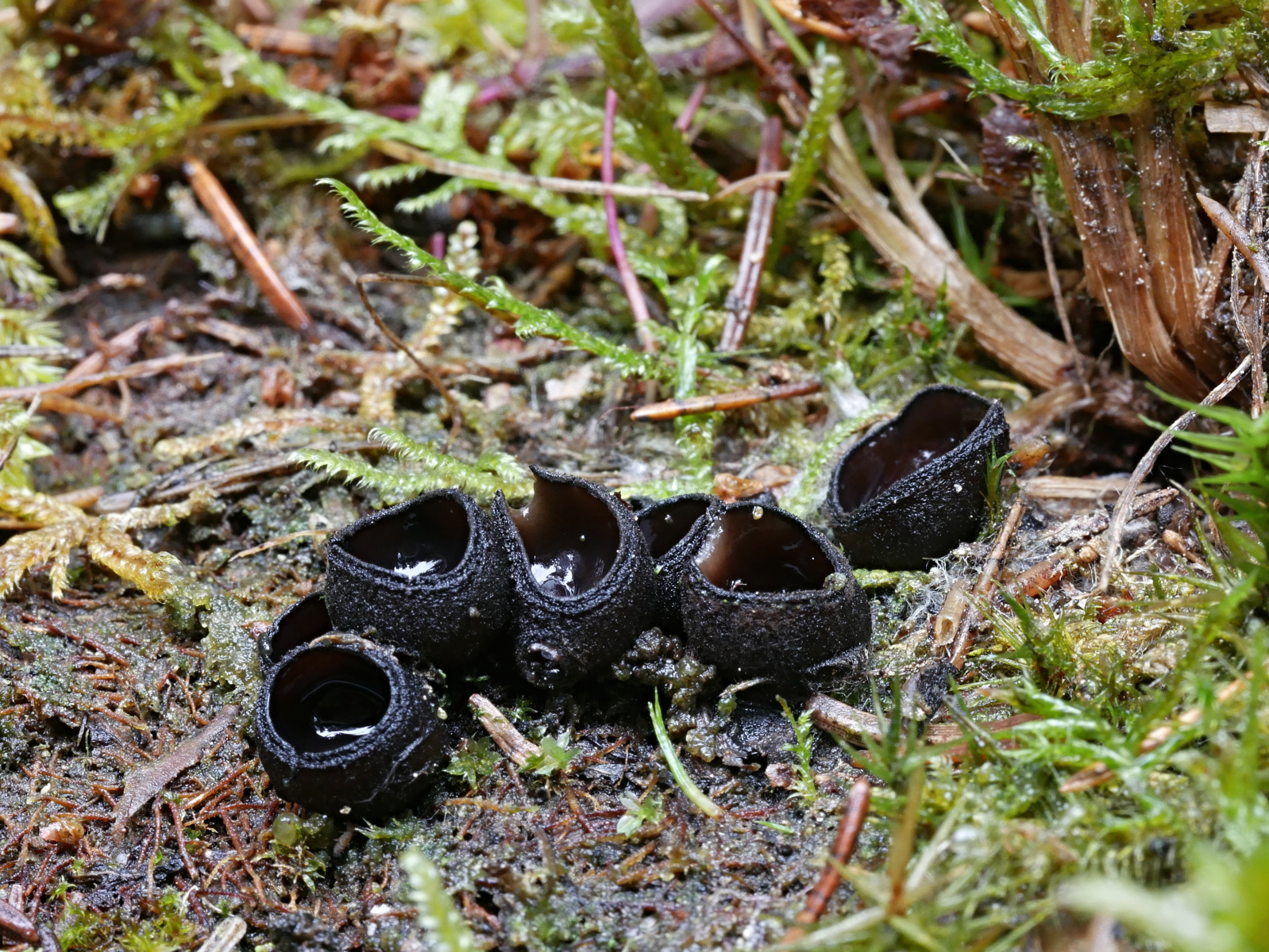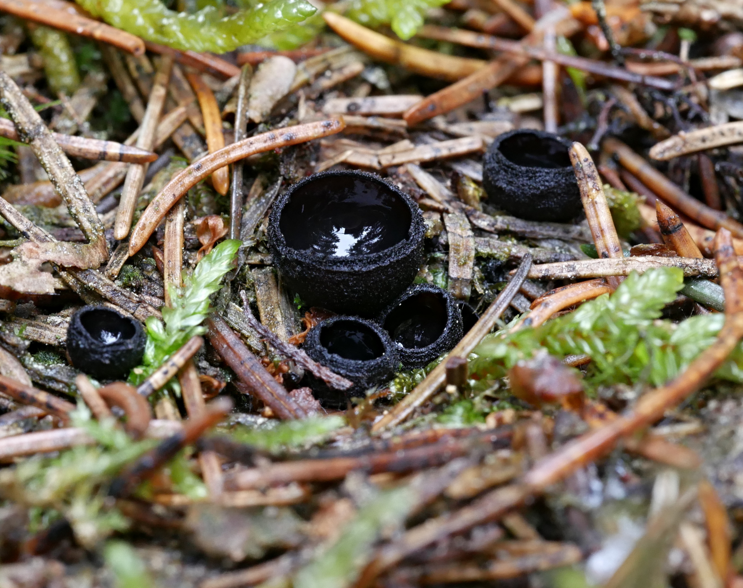 Der Glänzende Schwarzborstling (Pseudoplectania nigrella) begegnete uns am 2.3. in recht jungen Exemplaren. Gestern waren sie kaum gewachsen, drum tut es auch die Fotos von zuletzt.