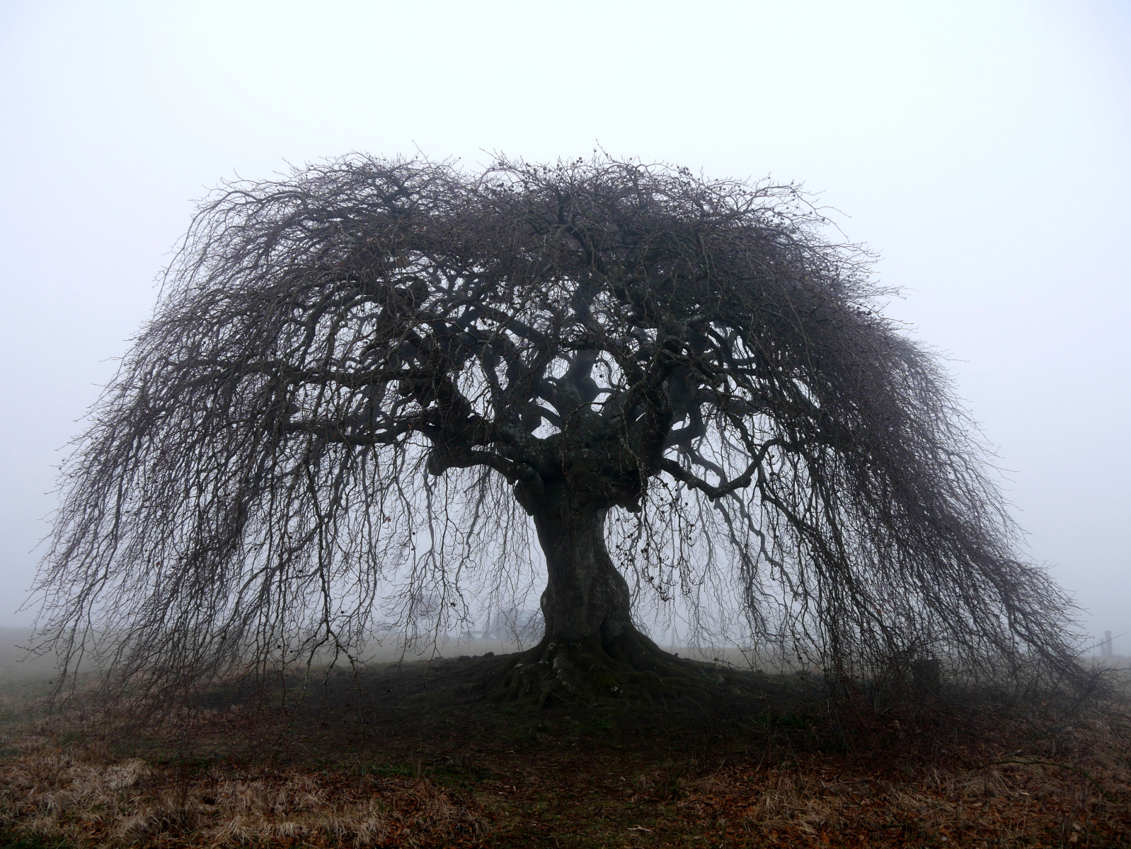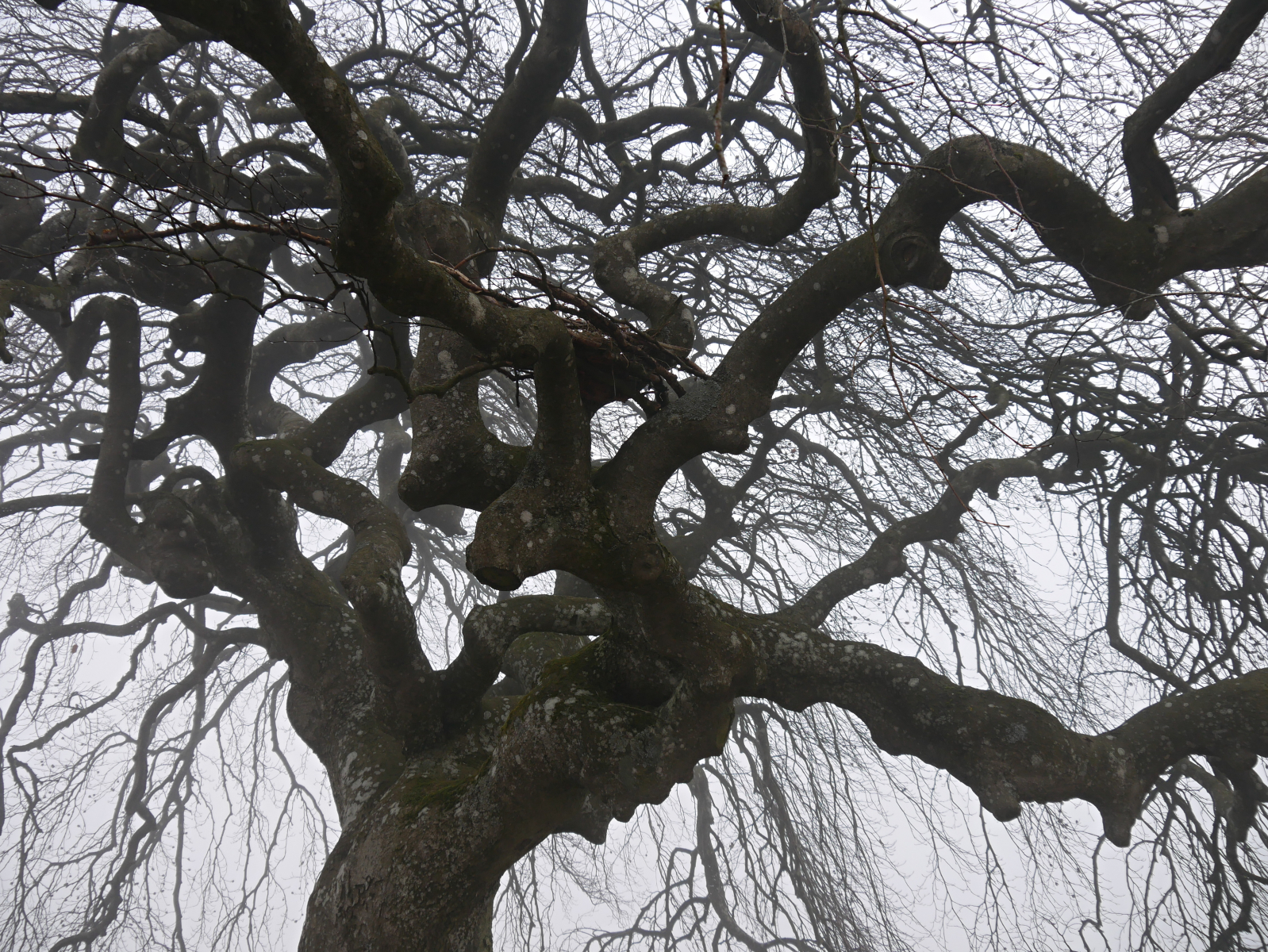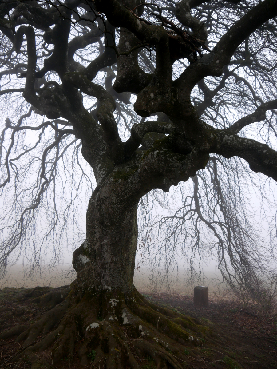 Süntelbuchen sind schon was besonderes. Diese hier ist oft fotografiert. Auch von uns, aber noch nicht so mystisch im Frühnebel.
