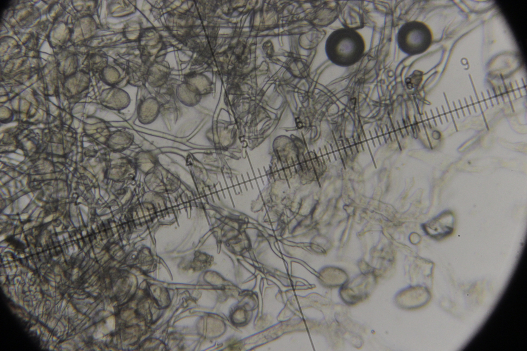 Danach wird es schwierig, die Hyphen sind stark verklebt und es ist sehr schwer die zu trennen ohne alles zu zerstören. Na ja irgendwann mit sehr viel Feingefühl habe ich geschafft ein paar Basidien zu sehen.