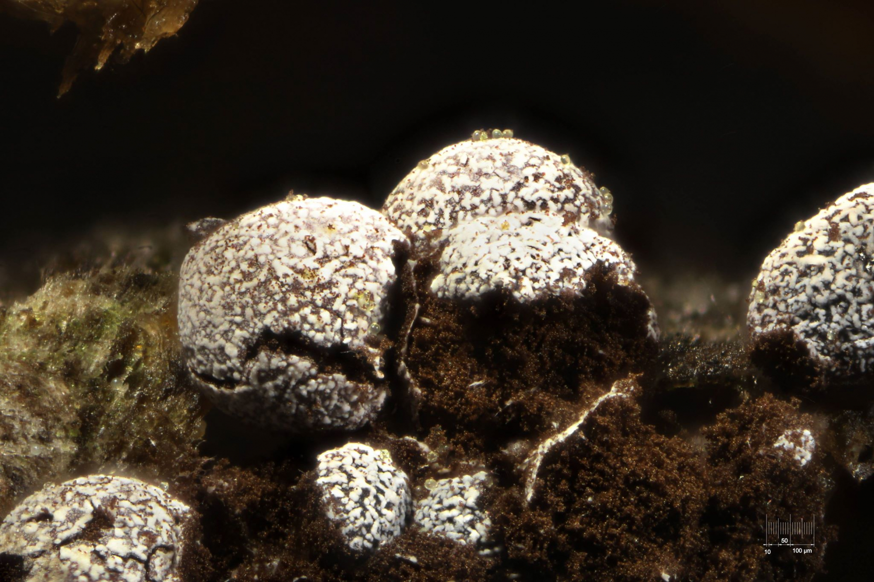 am letzten Wochenende war ich zusammen mit Florian,Gerhard & Tanja sowie einen Pilzfreund von ihr im Bückeburger Schlosspark. Am Ende der Tour endeckte Florian auf kleinen Holzhäckseln diesen Schleimpilz. Er hat ihn anschließend Gerhard mitgegeben von dem auch die Fotos sind. Gerhard fragt ob das Badhamia panicea sein kann könnte das Passen?