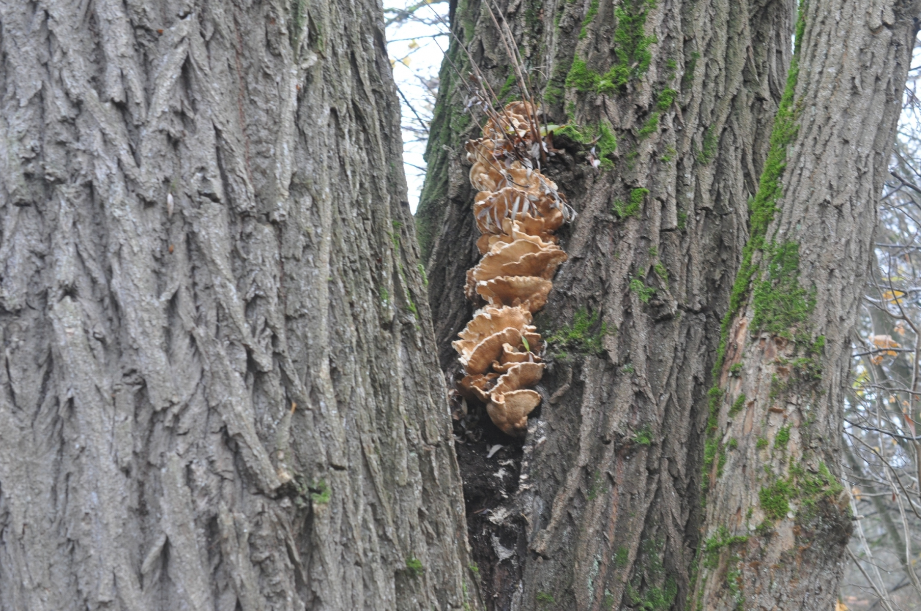 Nr 10 oben an Baum ist alte Laetiporus sulphureus - Schwefelporling , er wachst gern so oben an Baum , Riesenporling Meripilus giganteus wachst unten gern an begrabene Wurzeln .