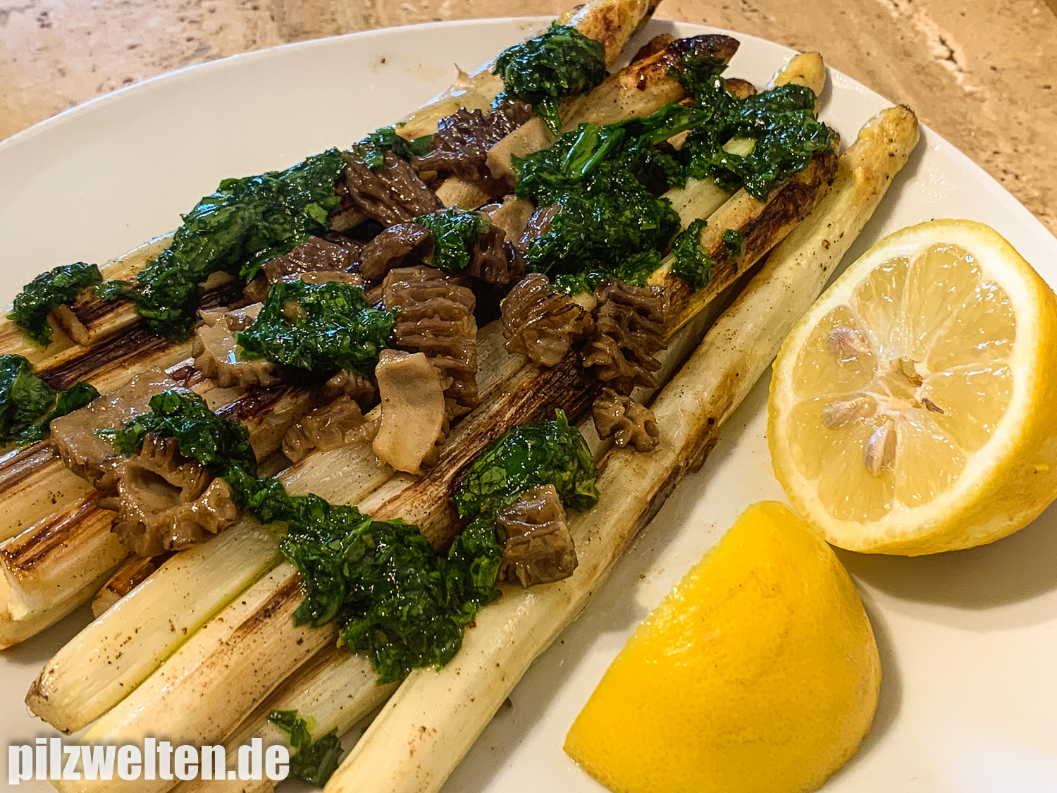 6. Zum Essen gabs dann Spargel, mit frischen Spitzmorcheln und Bärlauch-Oliven-Kräuterpaste - so macht der Start in die Morchelsaison richtig Spaß!
