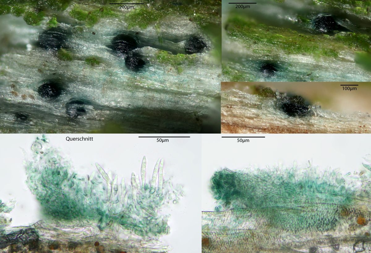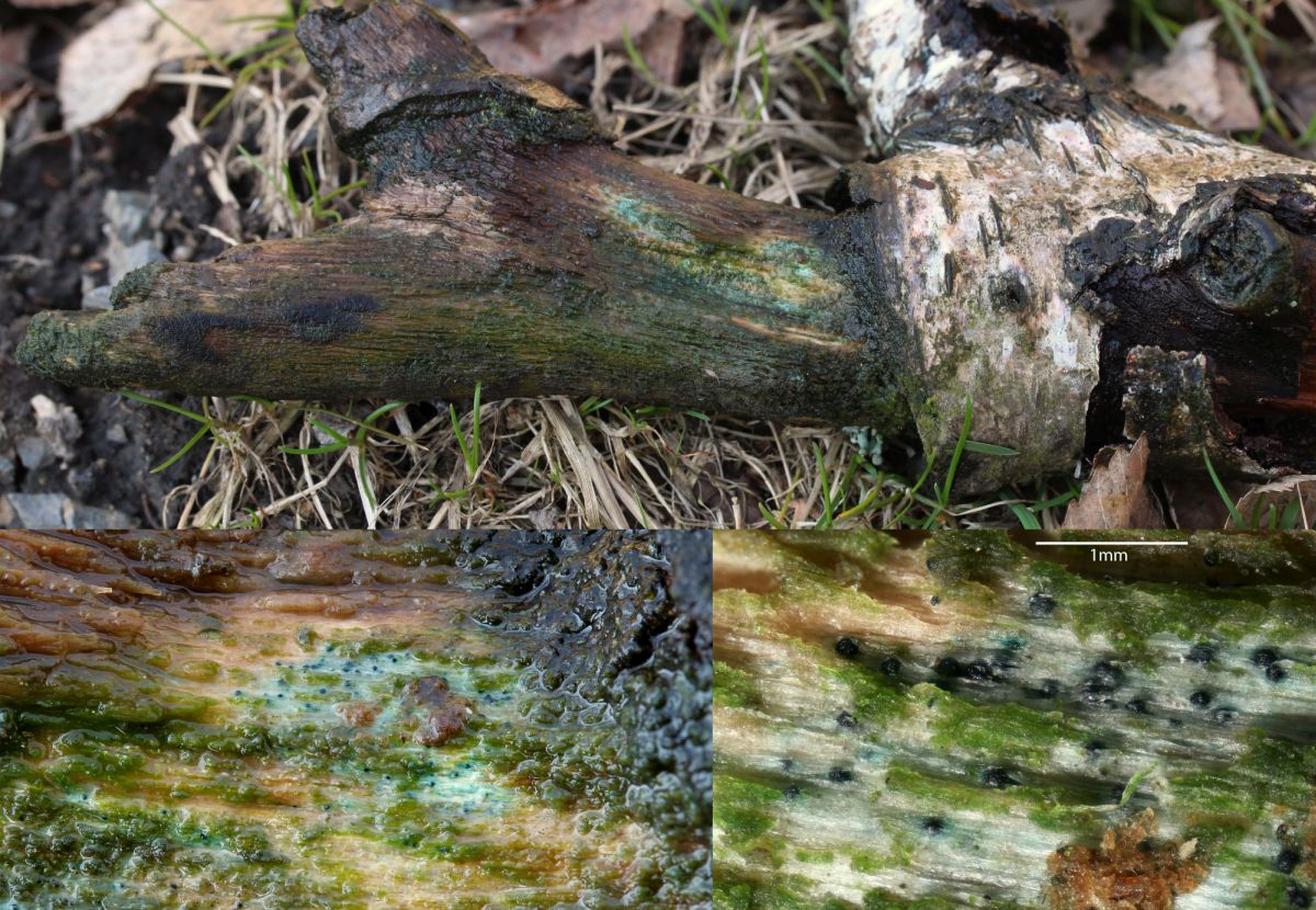 habe vor einigen Tagen eine Anamorphe an einem Stück Birkenholz in einer Pfütze gefunden. Das Ding färbt das Holz grün, so wie es Chlorociboria auch tut, nur deren Anamorphen sehen ganz anders aus. Vielleicht kann jemand was damit anfangen? So oder so schön anzusehen. Die Konidien erinnern etwas an Fusarium, nicht so meine Baustelle, besonders, wenn keine Teleomorphe da ist, aber da wüsste ich nichts, was so grün färbt.