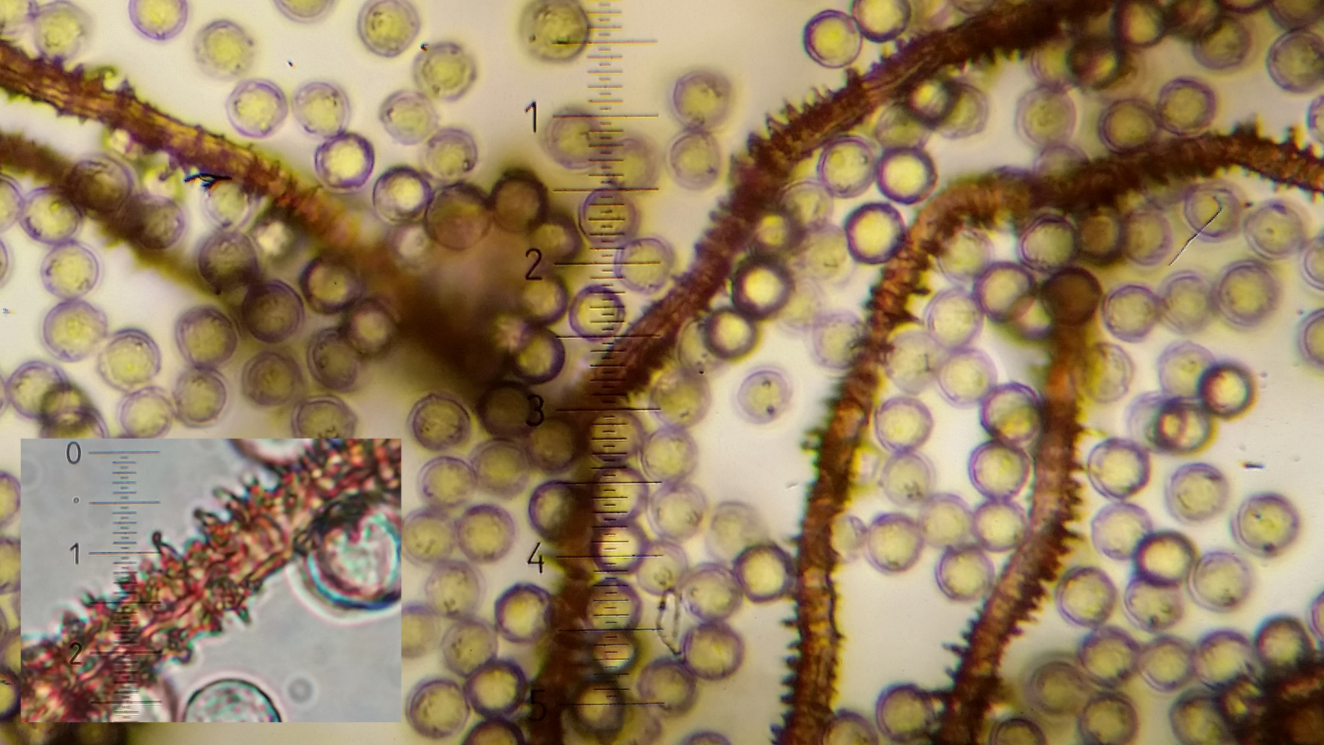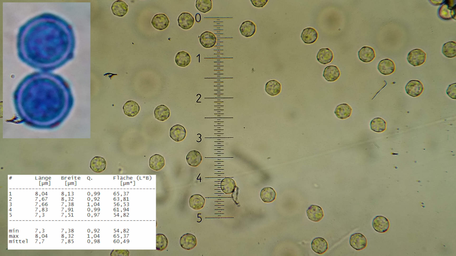 Auch das Ornament des Capilitum passt besser zu A. incarnata und der Durchmesser die bei 5 µm liegt, bei A. affinis sollte 3-9 sein.