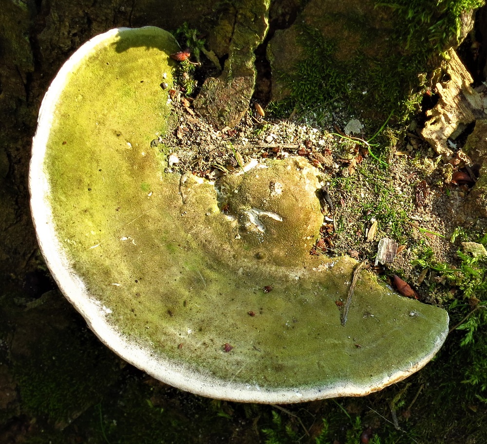 Norbert hat schon bestimmen , es gehet um Trametes gibbosa aber nicht alle . Unten an Baumstamm (Bild 1) sind noch andere Pilze und gehet um Fomes fomentarius sehr alte Fruchtkörper (Beide Arten sind Laubholz Bewohner)