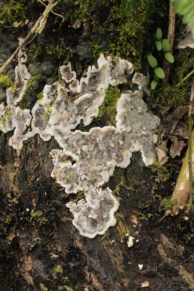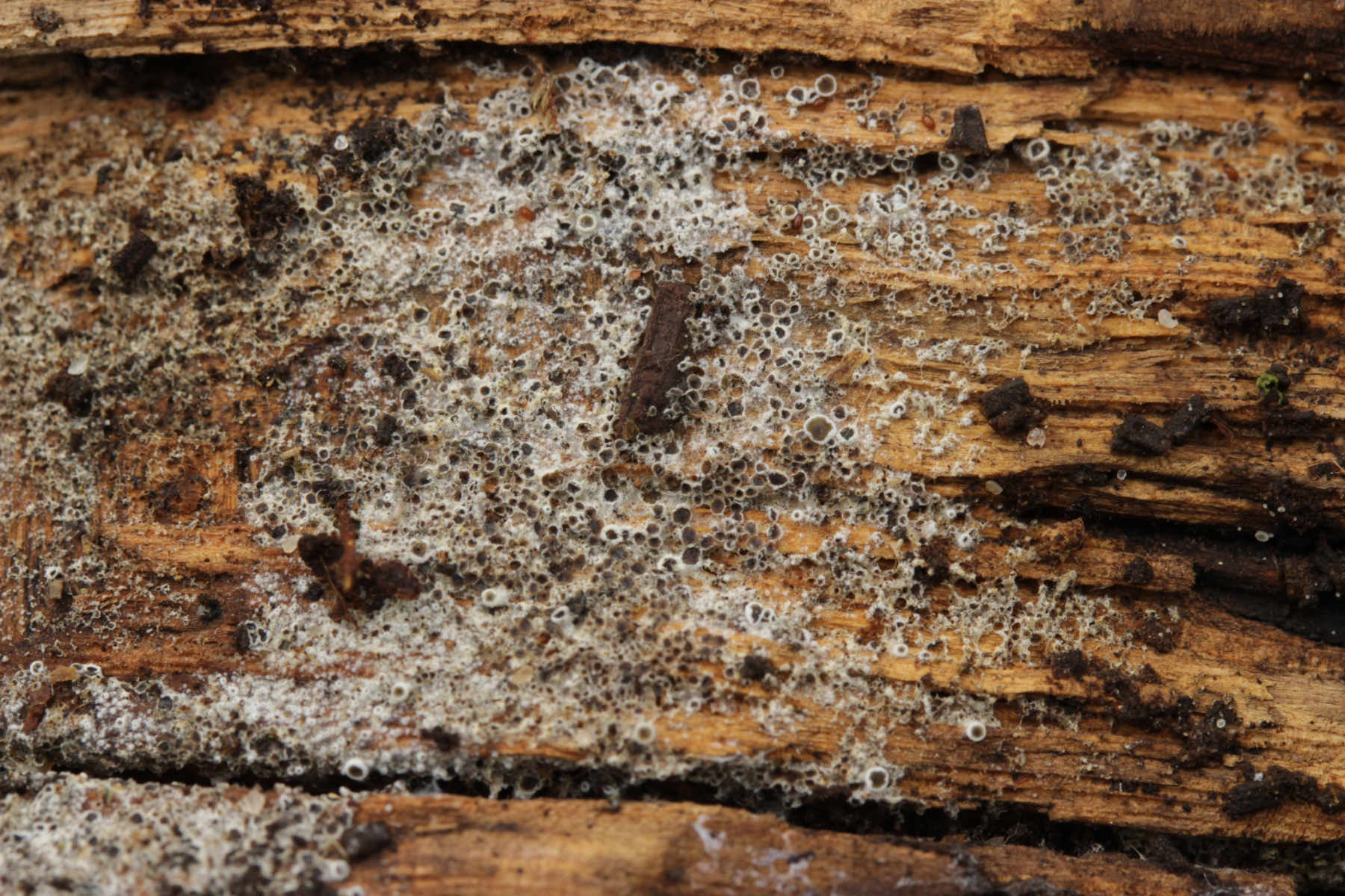 8. Auf Laubholz, entweder Esche oder Eiche. Basidien 4-sporig, keine Schnallen erkennbar, auffällige, kristallbesetzte Zystiden um die 95 µm. Daneben aber auch zystidenartige Elemente, die ohne Kristalle waren. Sporen elliptisch um die 5 µm