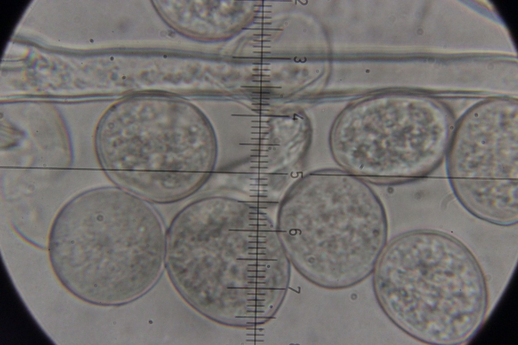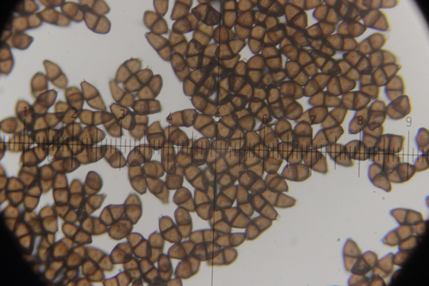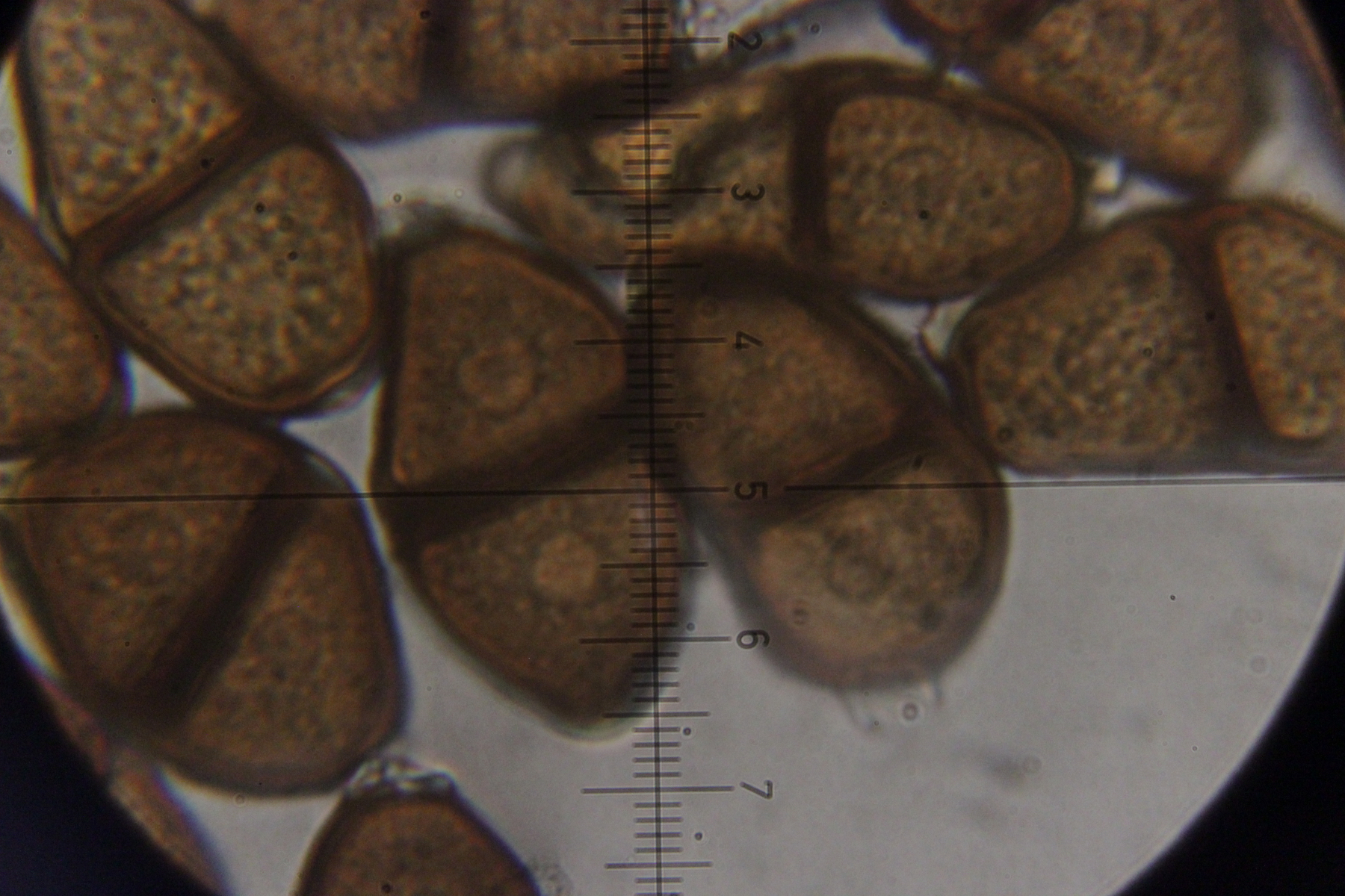ja, so eine Spore wäre deutlich zu klein. Aber man kann an einer einzelnen Sporen auch keine Bestimmung festmachen.