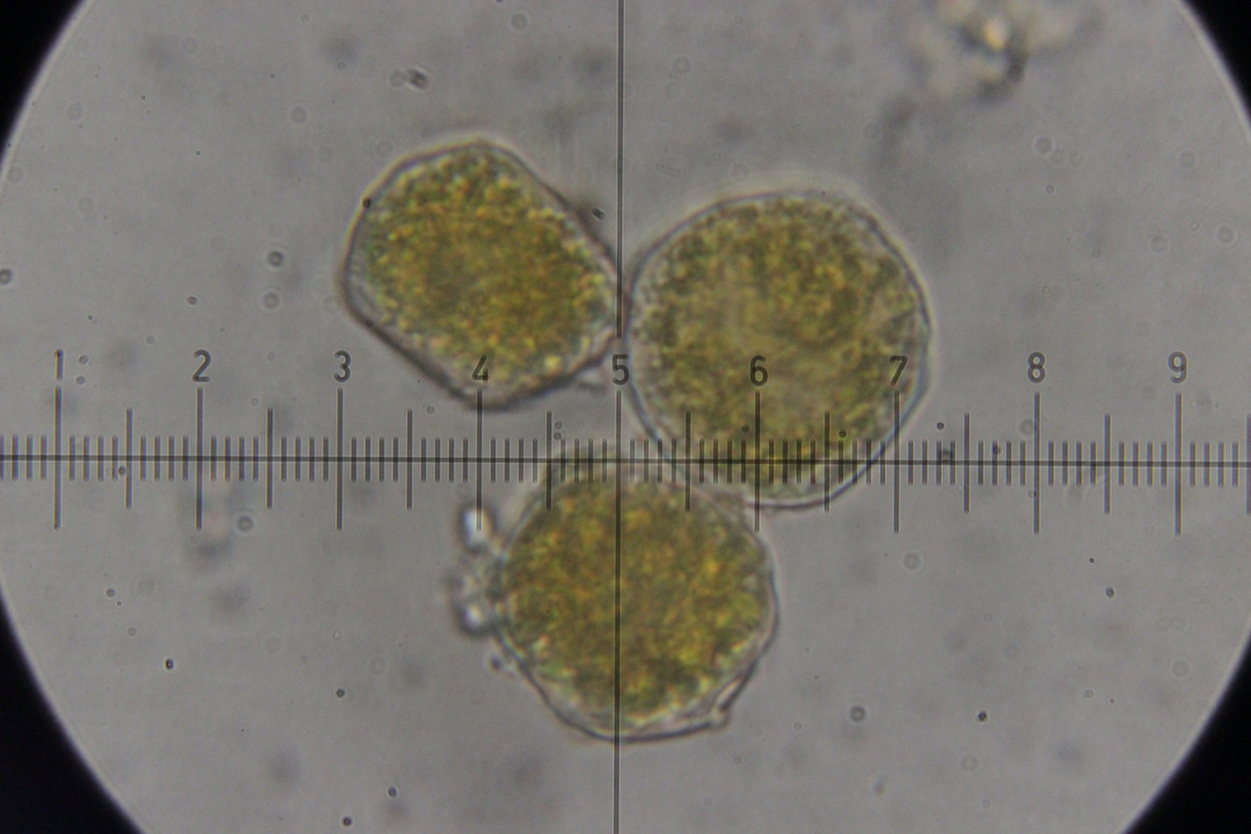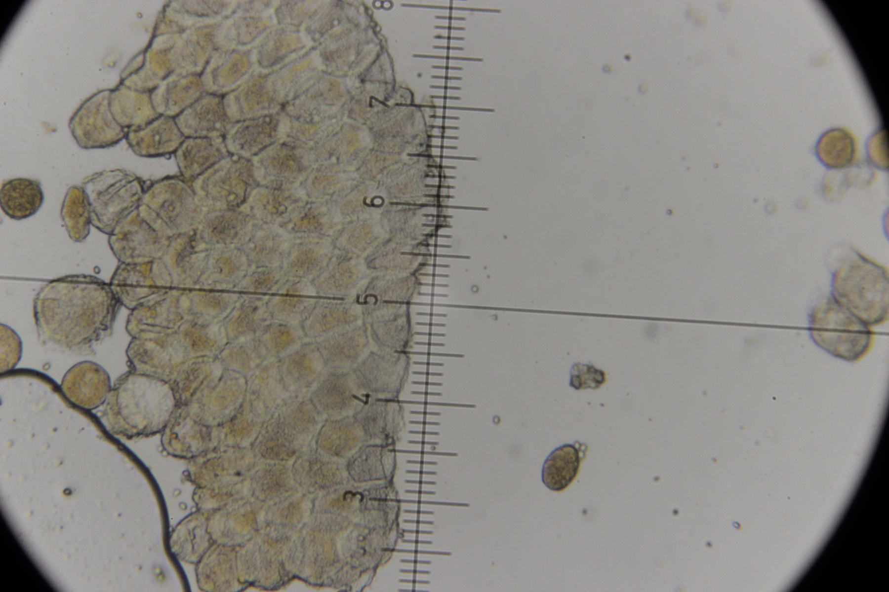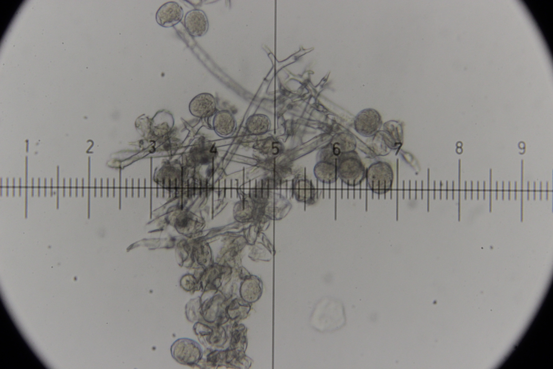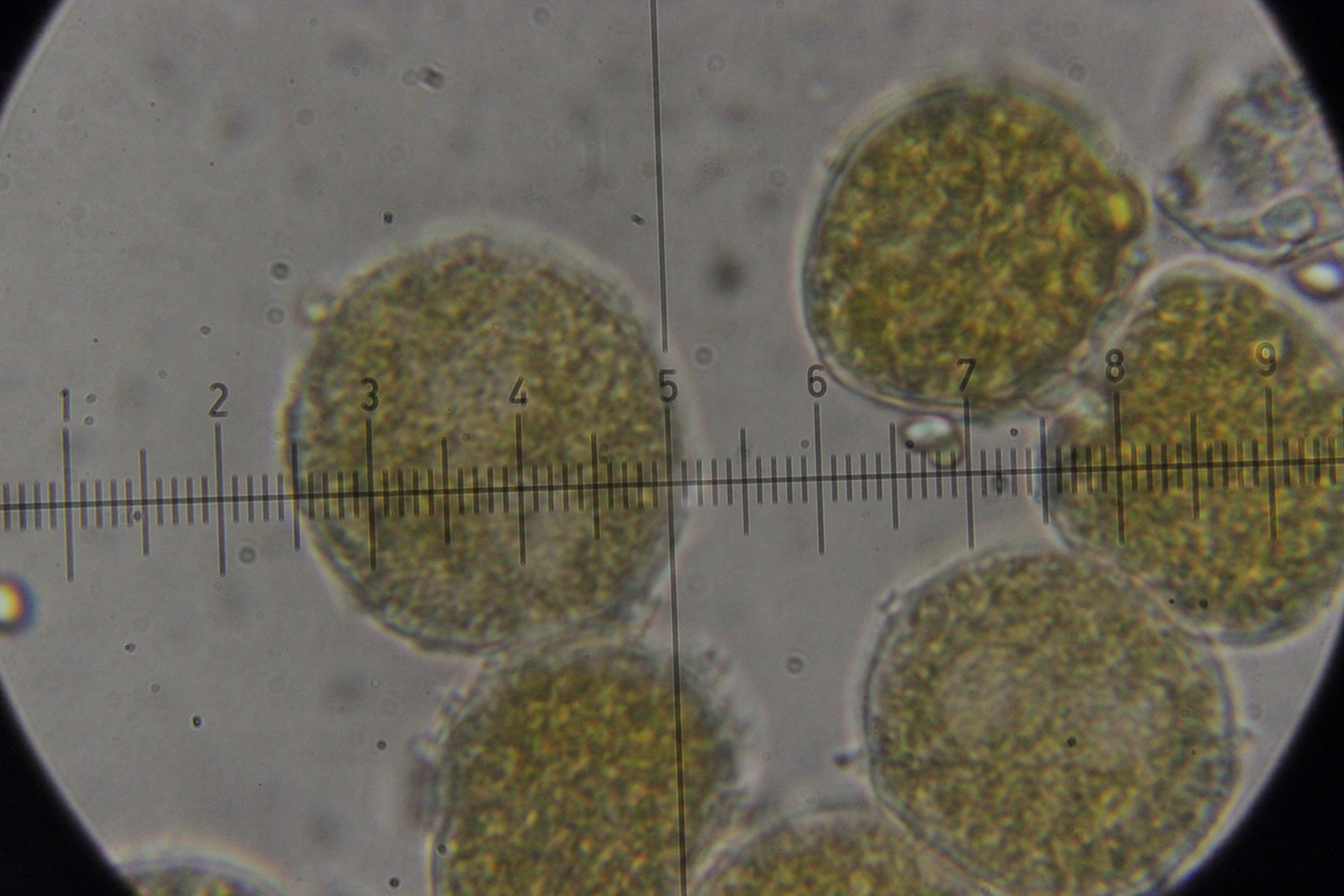 ja, so eine Spore wäre deutlich zu klein. Aber man kann an einer einzelnen Sporen auch keine Bestimmung festmachen.