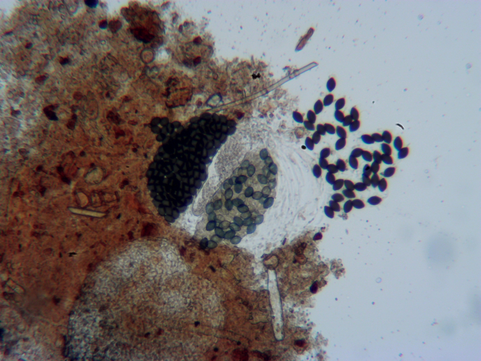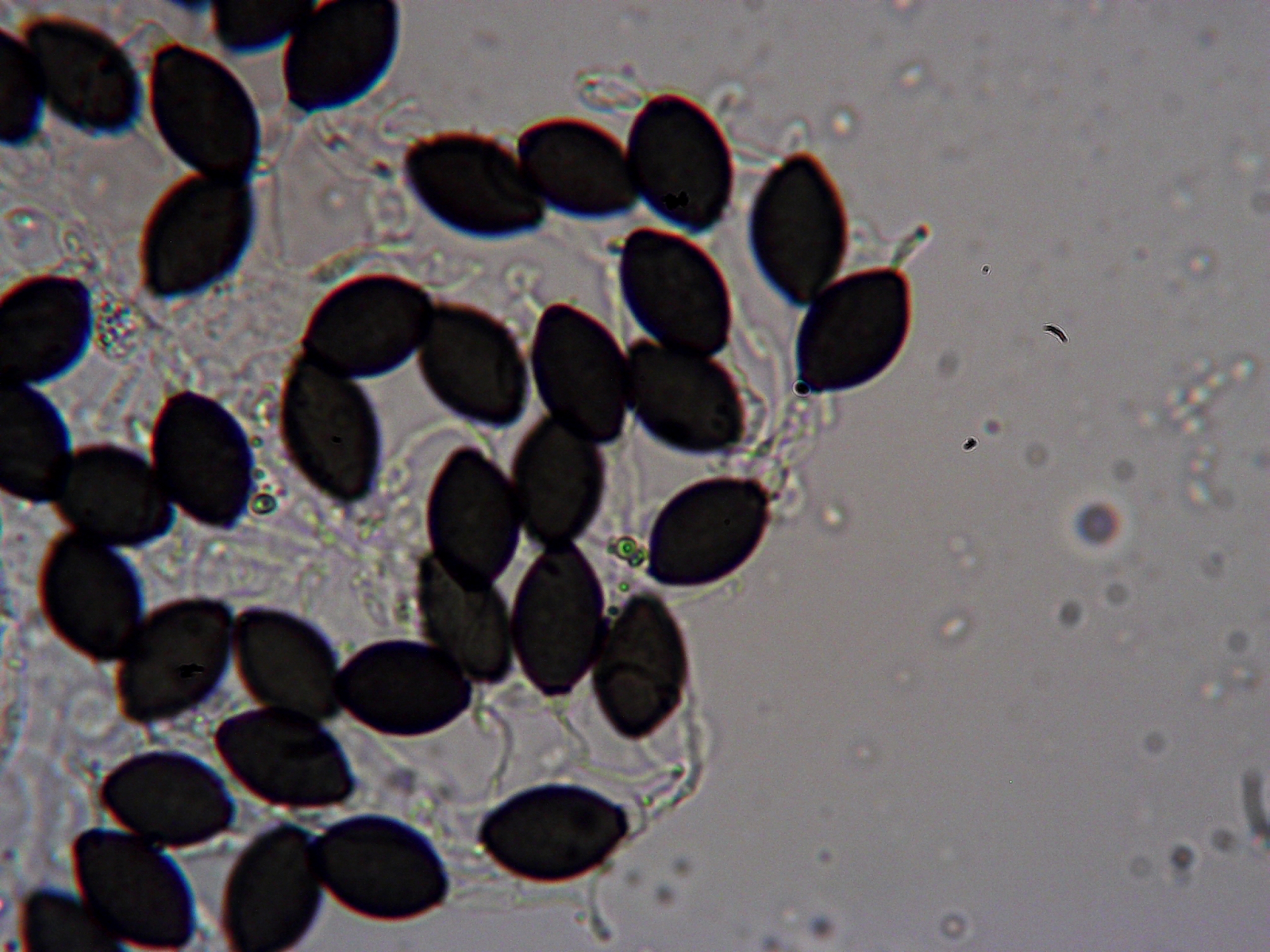 Die Sporen an sich waren 15-18 x 11 µm mit einem rel. kurzem und breiten Anhang (2. Zelle der Spore) und einem längeren dünnerem Anhang.