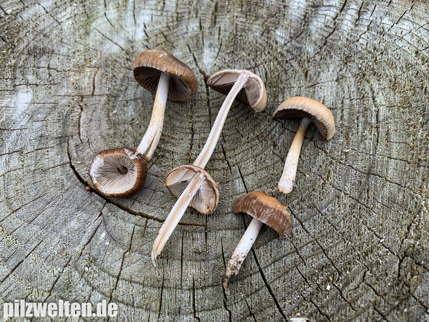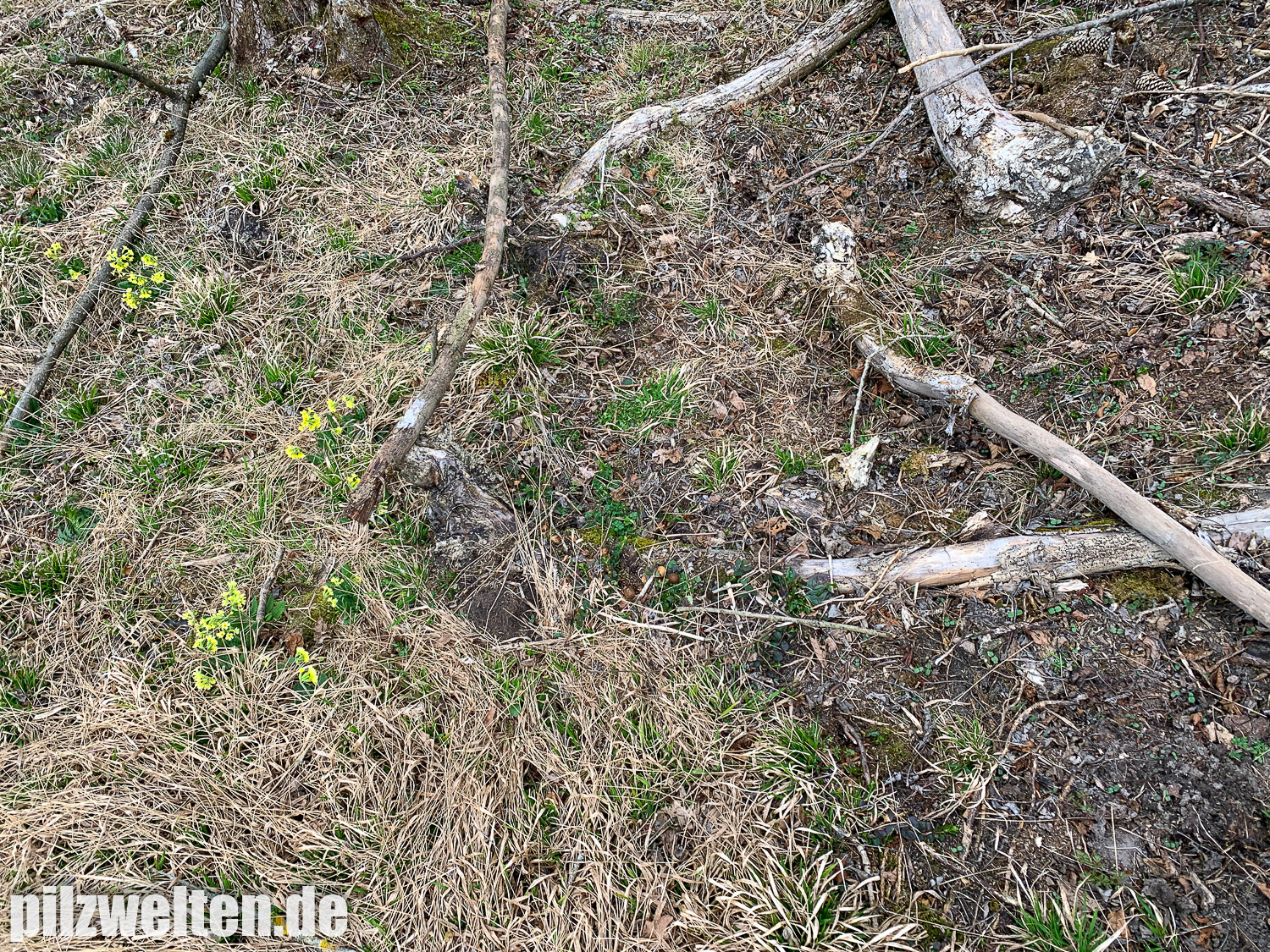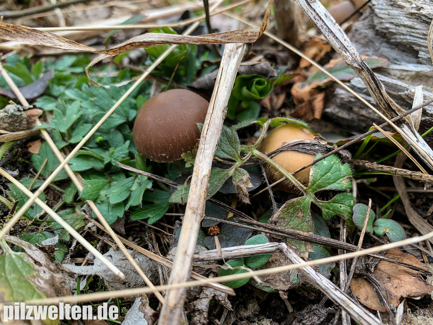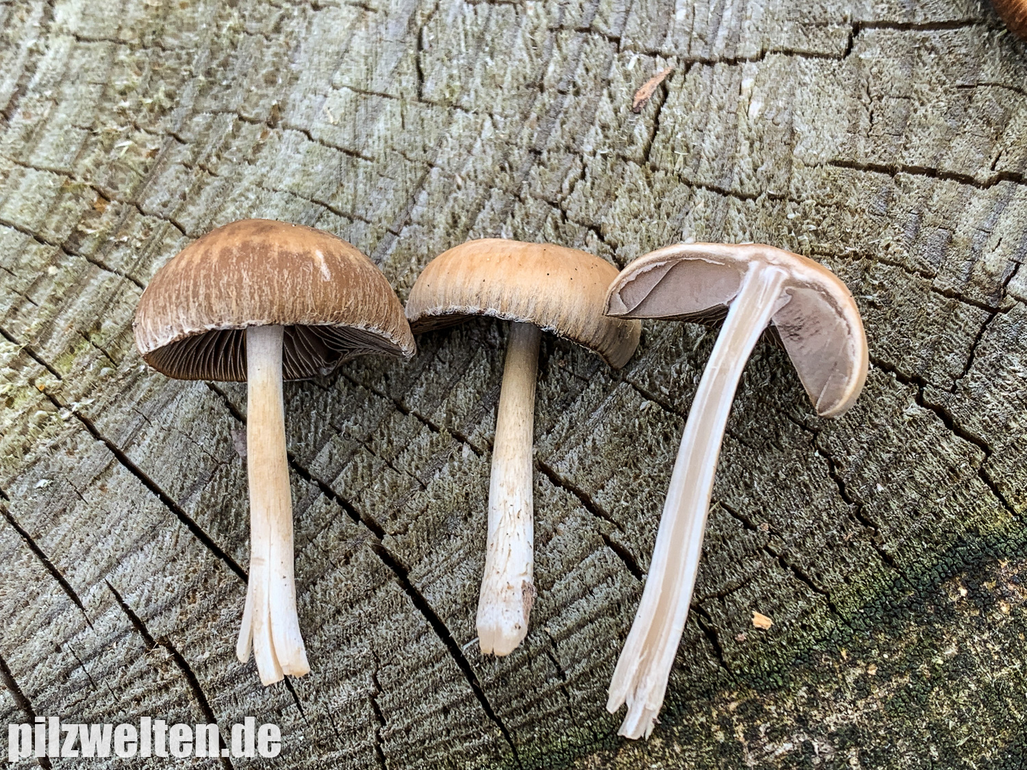 die folgende Art konnten wir am Übergang zwischen einem abgeholzten Kiefern- Fichtenbestand zu einem auwaldtypischen Waldabschnitt finden. In der Nähe stand eine Vielzahl an Schlüsselblumen. Die Fruchtkörper wuchsen auf bzw. an einem halb vergrabenem Ast (vermutlich Esche). Geruch war kaum wahrnehmbar bis leicht pilzig. Wir wären bei unserem Bestimmungsversuch irgendwo in der Ecke bei Psathyrella artemisiae gelandet. Es waren sicherlich insgesamt 15-20 Fruchtkörper, die aber nicht büschelig wuchsen, sondern eher gesellig auf oder knapp neben dem Totholz wuchsen. Boden war trotz Trockenperiode noch relativ feucht.