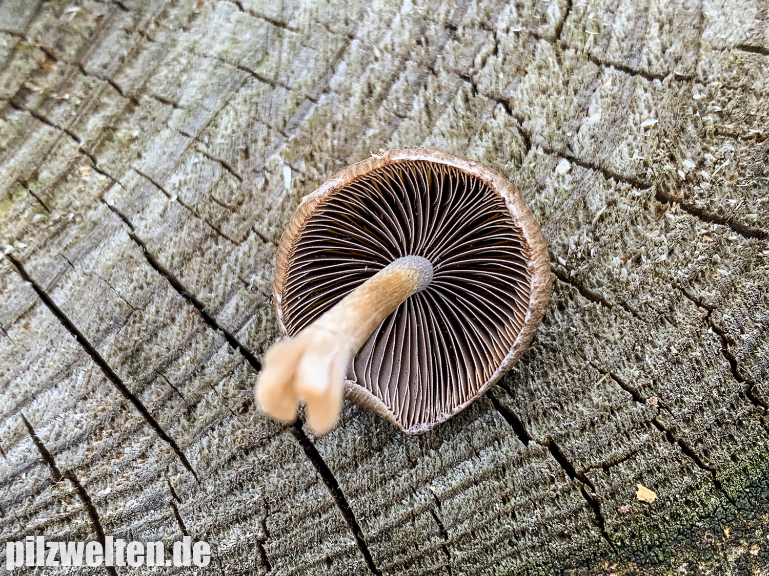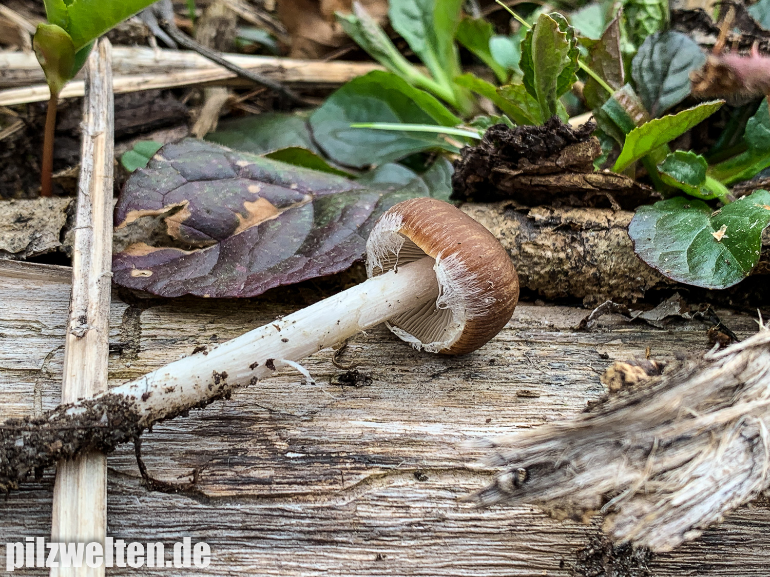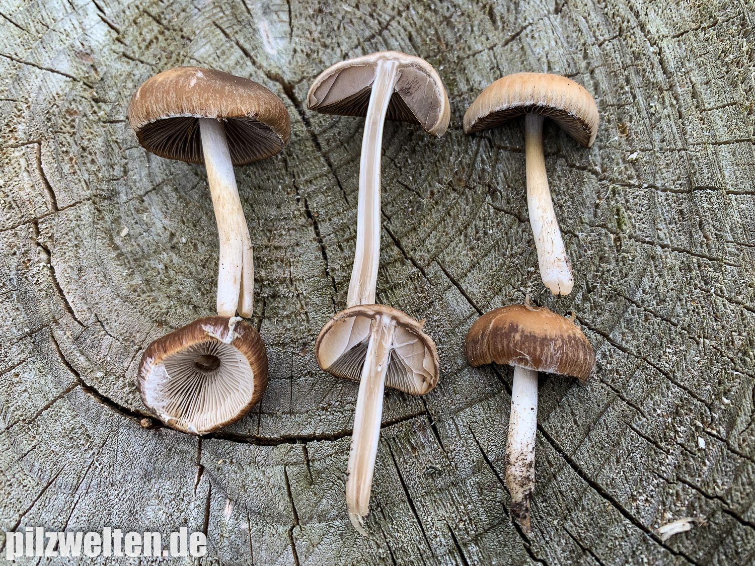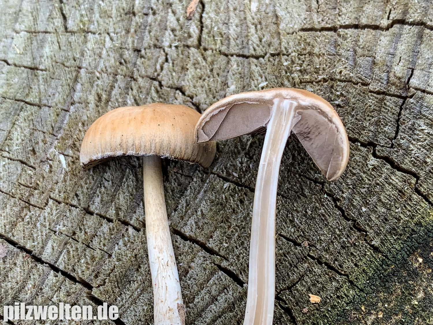 die folgende Art konnten wir am Übergang zwischen einem abgeholzten Kiefern- Fichtenbestand zu einem auwaldtypischen Waldabschnitt finden. In der Nähe stand eine Vielzahl an Schlüsselblumen. Die Fruchtkörper wuchsen auf bzw. an einem halb vergrabenem Ast (vermutlich Esche). Geruch war kaum wahrnehmbar bis leicht pilzig. Wir wären bei unserem Bestimmungsversuch irgendwo in der Ecke bei Psathyrella artemisiae gelandet. Es waren sicherlich insgesamt 15-20 Fruchtkörper, die aber nicht büschelig wuchsen, sondern eher gesellig auf oder knapp neben dem Totholz wuchsen. Boden war trotz Trockenperiode noch relativ feucht.