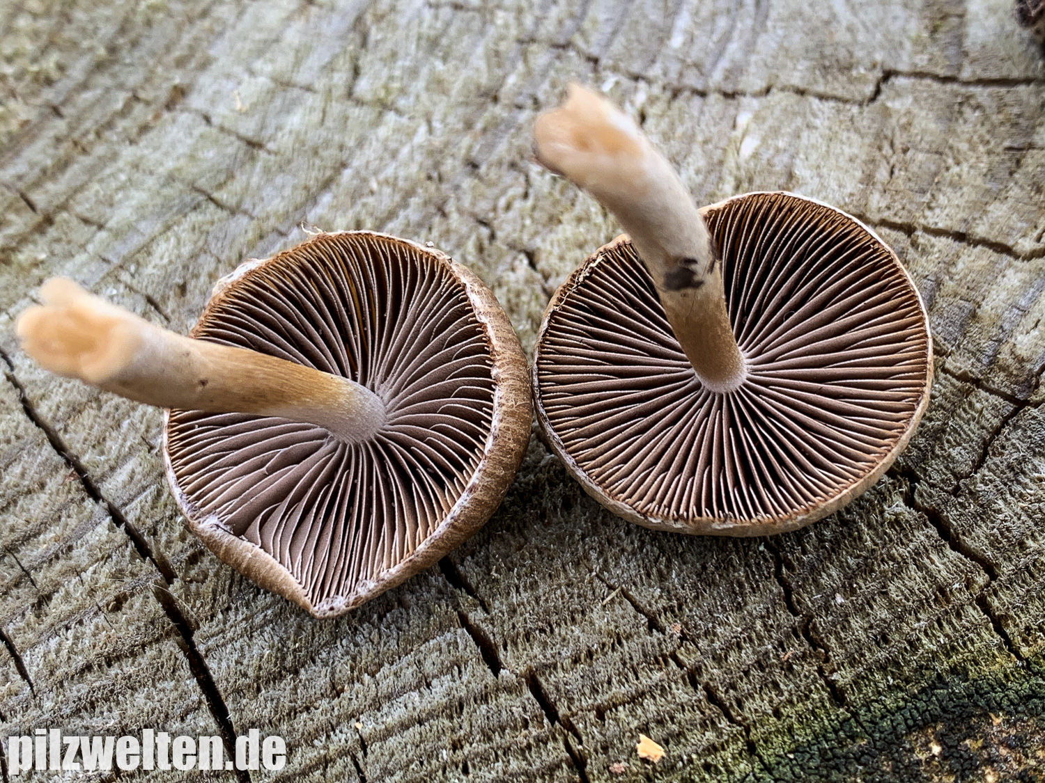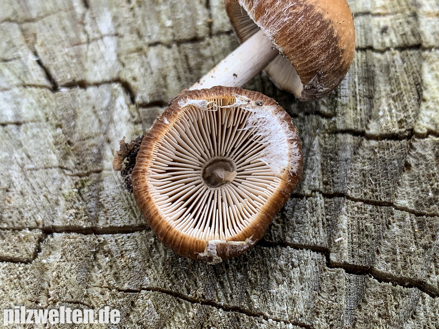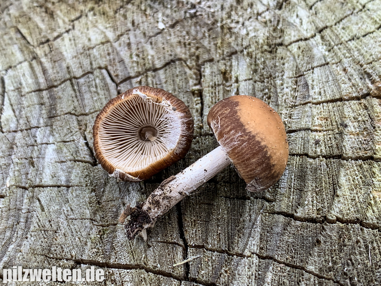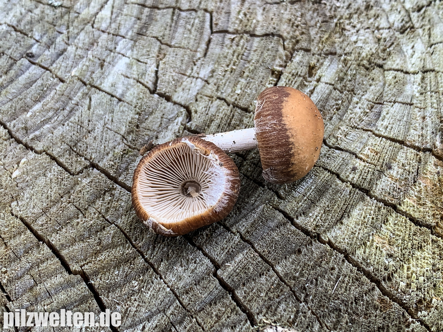 die folgende Art konnten wir am Übergang zwischen einem abgeholzten Kiefern- Fichtenbestand zu einem auwaldtypischen Waldabschnitt finden. In der Nähe stand eine Vielzahl an Schlüsselblumen. Die Fruchtkörper wuchsen auf bzw. an einem halb vergrabenem Ast (vermutlich Esche). Geruch war kaum wahrnehmbar bis leicht pilzig. Wir wären bei unserem Bestimmungsversuch irgendwo in der Ecke bei Psathyrella artemisiae gelandet. Es waren sicherlich insgesamt 15-20 Fruchtkörper, die aber nicht büschelig wuchsen, sondern eher gesellig auf oder knapp neben dem Totholz wuchsen. Boden war trotz Trockenperiode noch relativ feucht.
