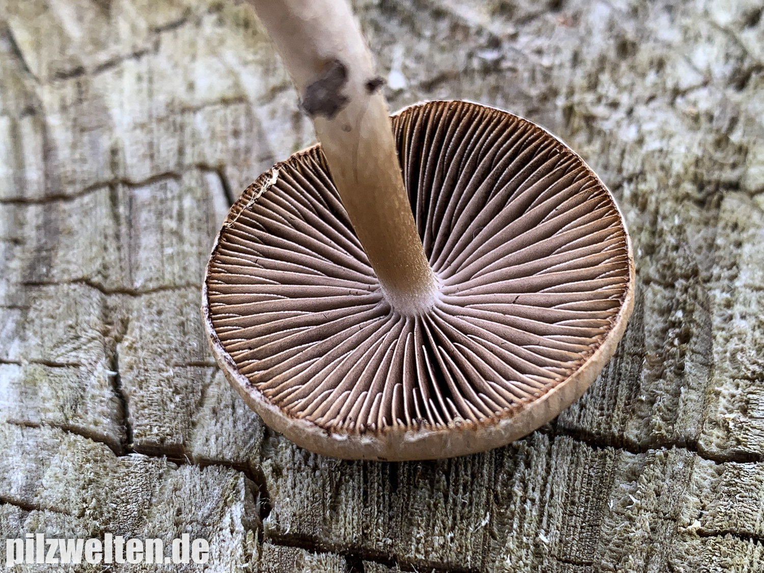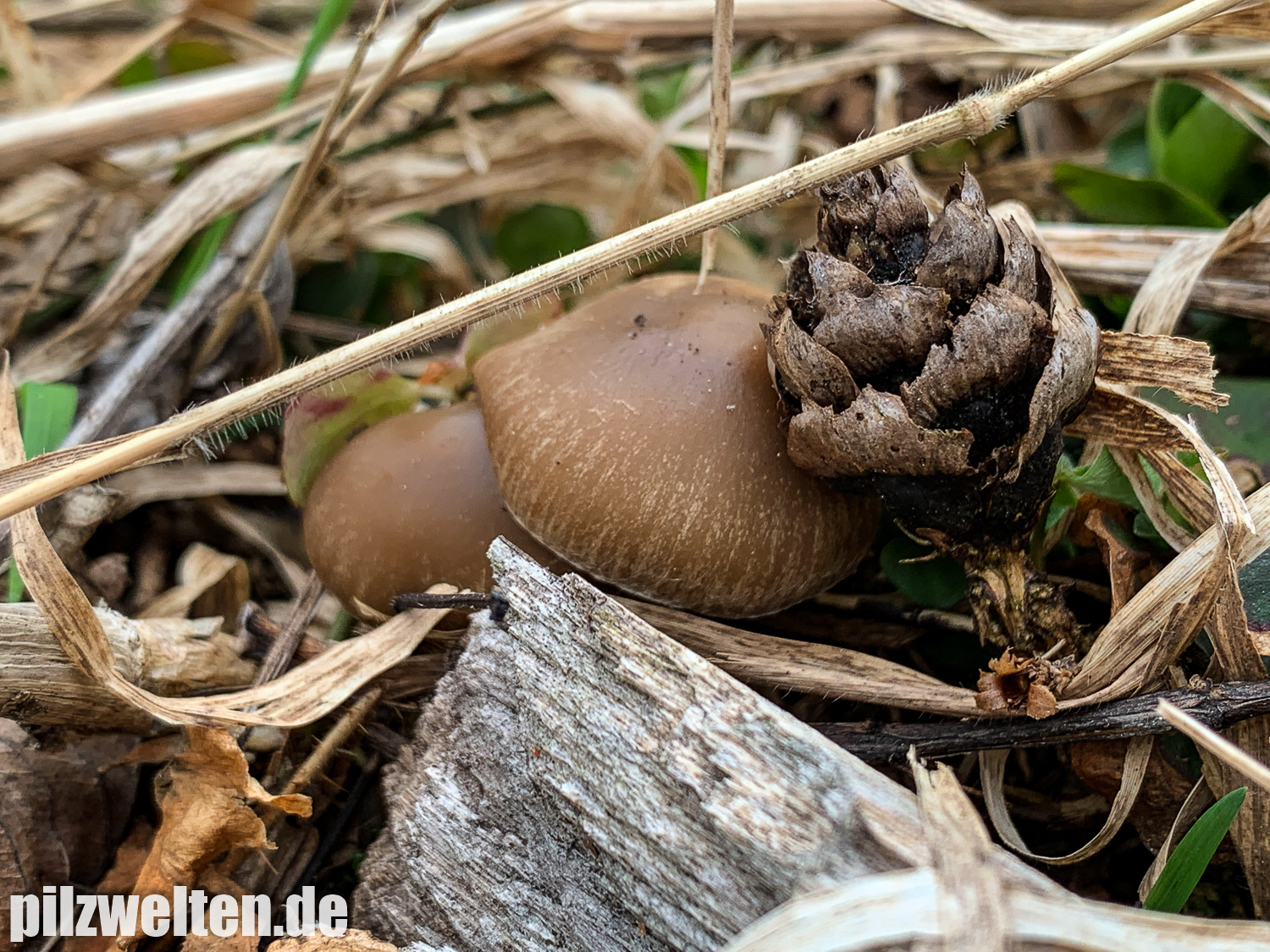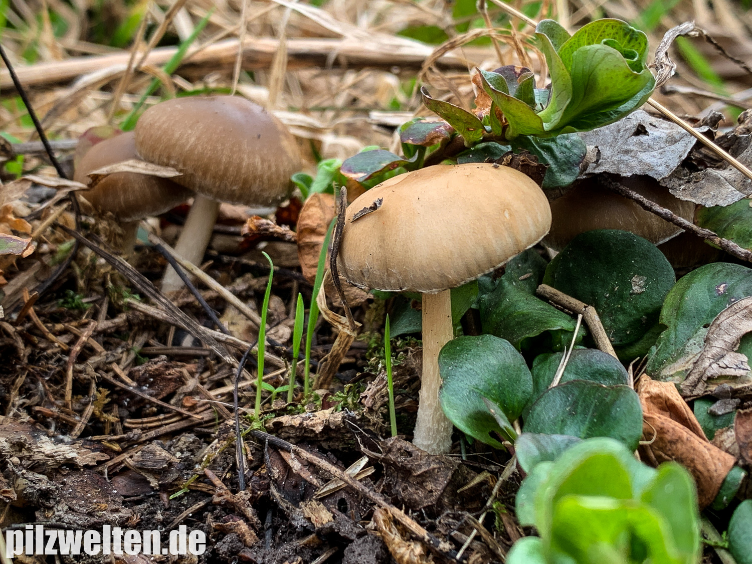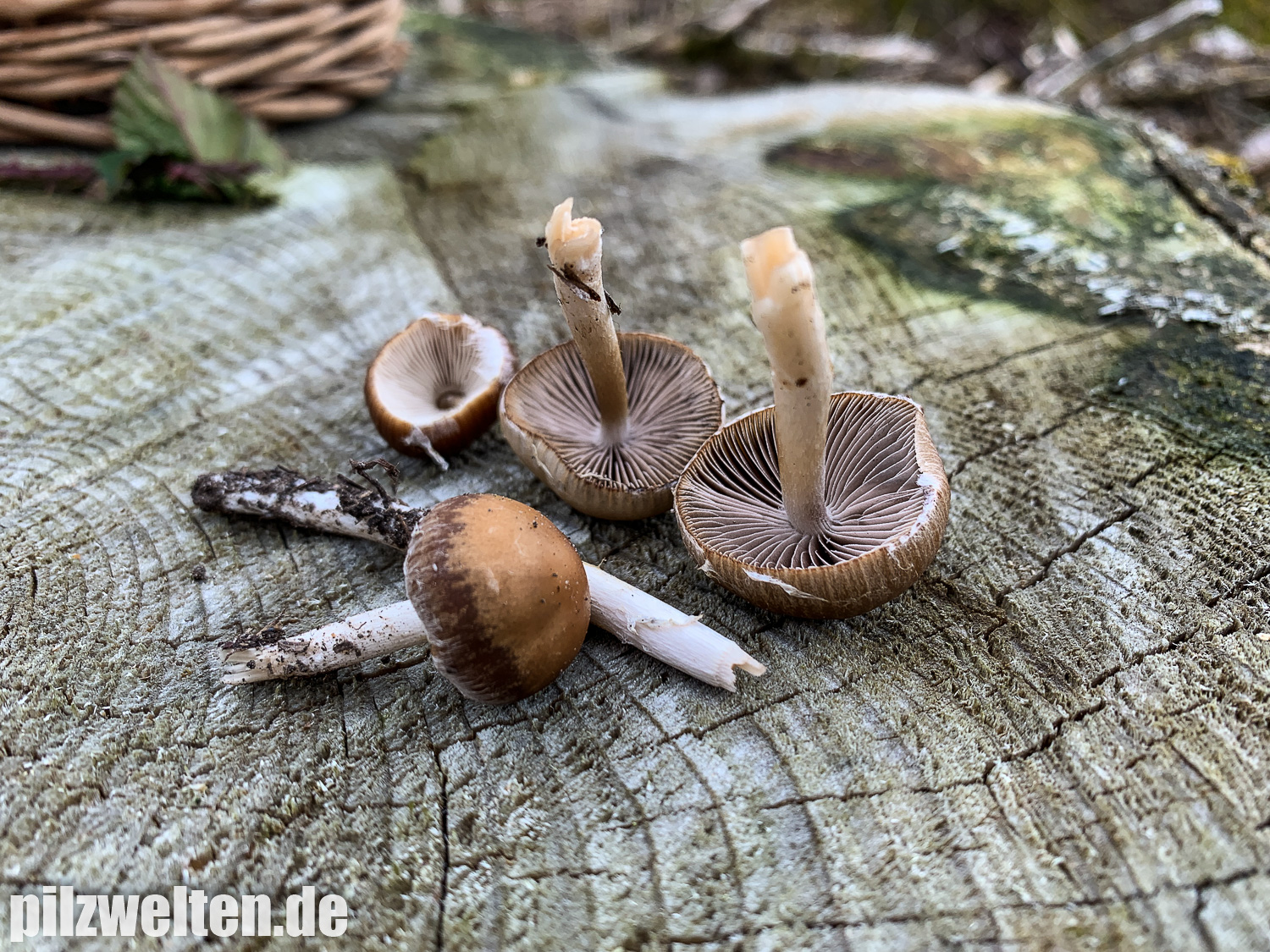 die folgende Art konnten wir am Übergang zwischen einem abgeholzten Kiefern- Fichtenbestand zu einem auwaldtypischen Waldabschnitt finden. In der Nähe stand eine Vielzahl an Schlüsselblumen. Die Fruchtkörper wuchsen auf bzw. an einem halb vergrabenem Ast (vermutlich Esche). Geruch war kaum wahrnehmbar bis leicht pilzig. Wir wären bei unserem Bestimmungsversuch irgendwo in der Ecke bei Psathyrella artemisiae gelandet. Es waren sicherlich insgesamt 15-20 Fruchtkörper, die aber nicht büschelig wuchsen, sondern eher gesellig auf oder knapp neben dem Totholz wuchsen. Boden war trotz Trockenperiode noch relativ feucht.