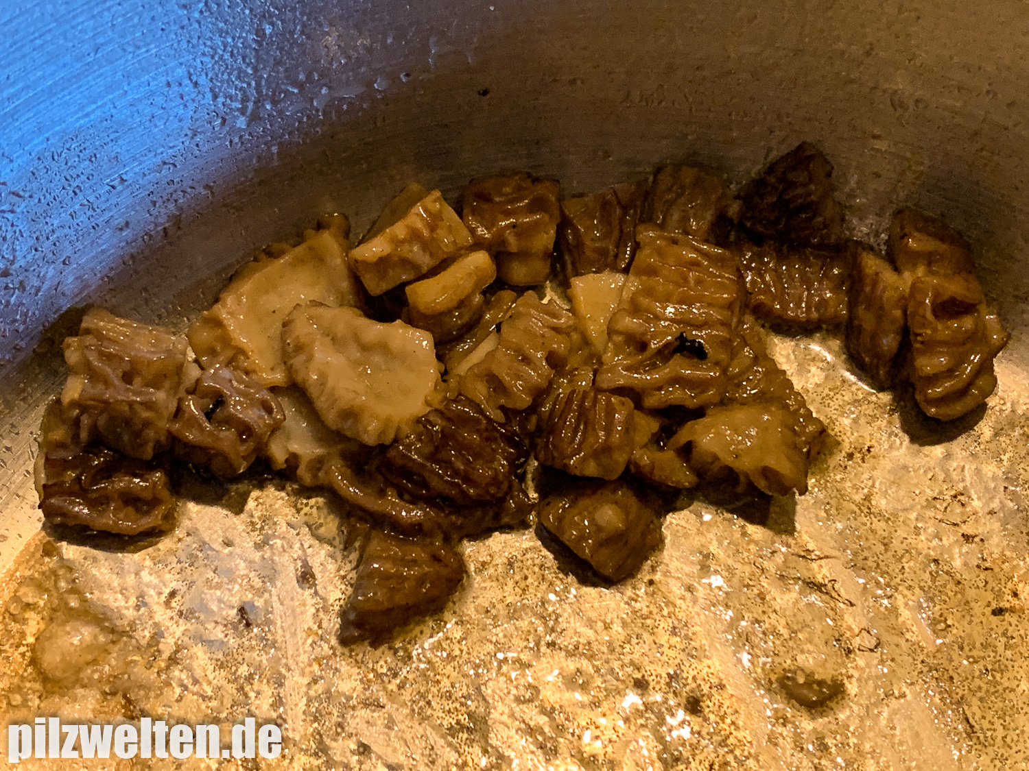 - Danach mit etwas Wasser oder Weißwein ablöschen und die Spitzmorcheln undbedingt gut durchgaren!