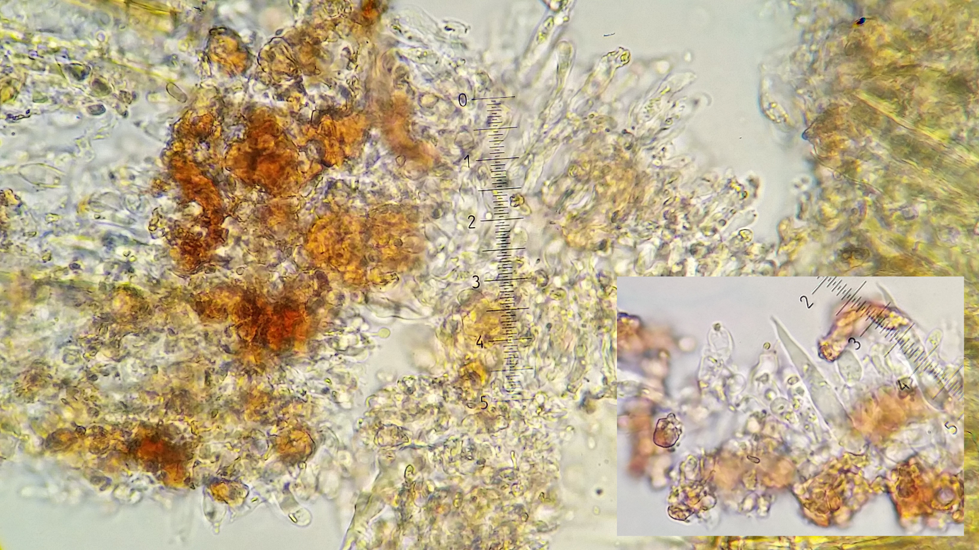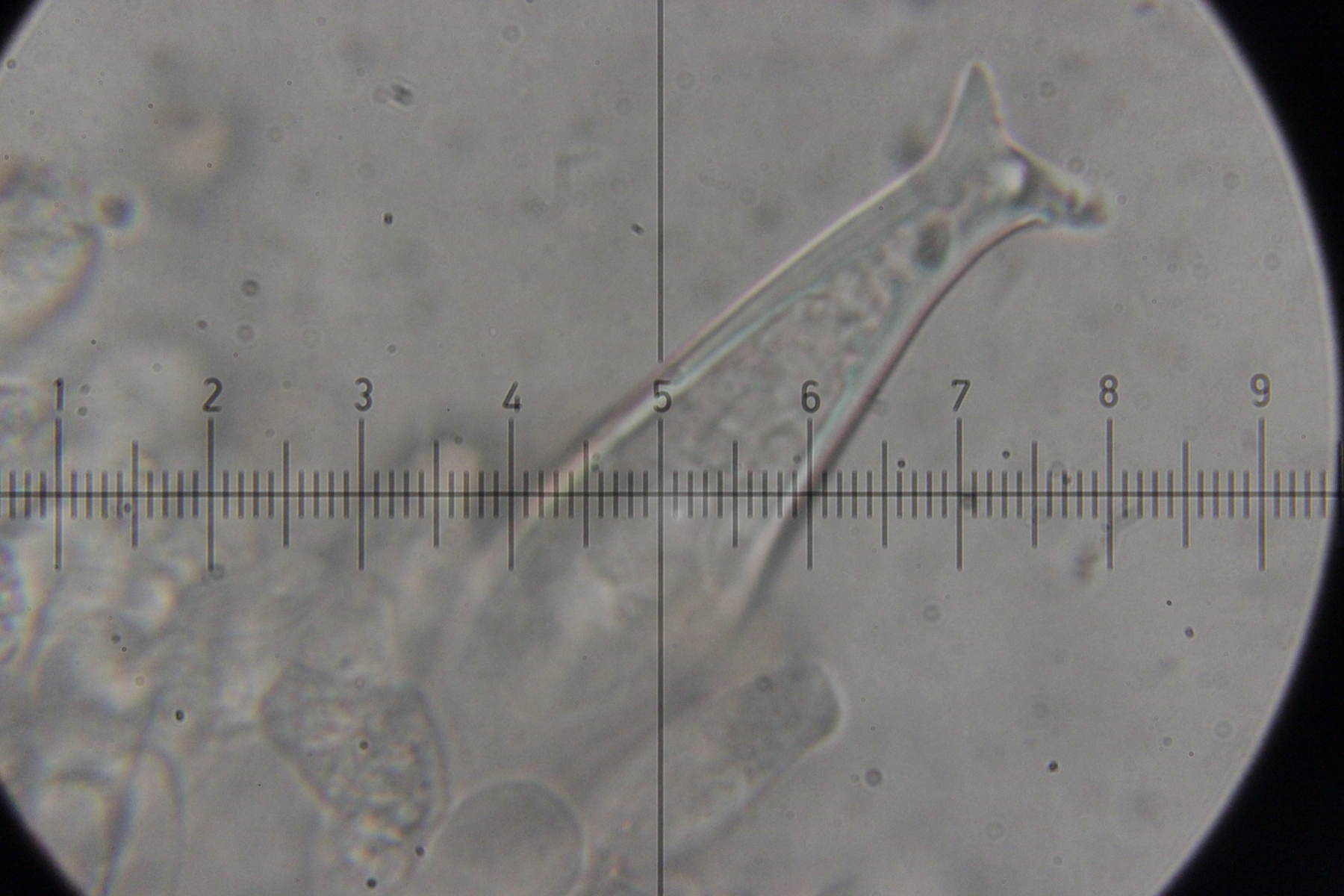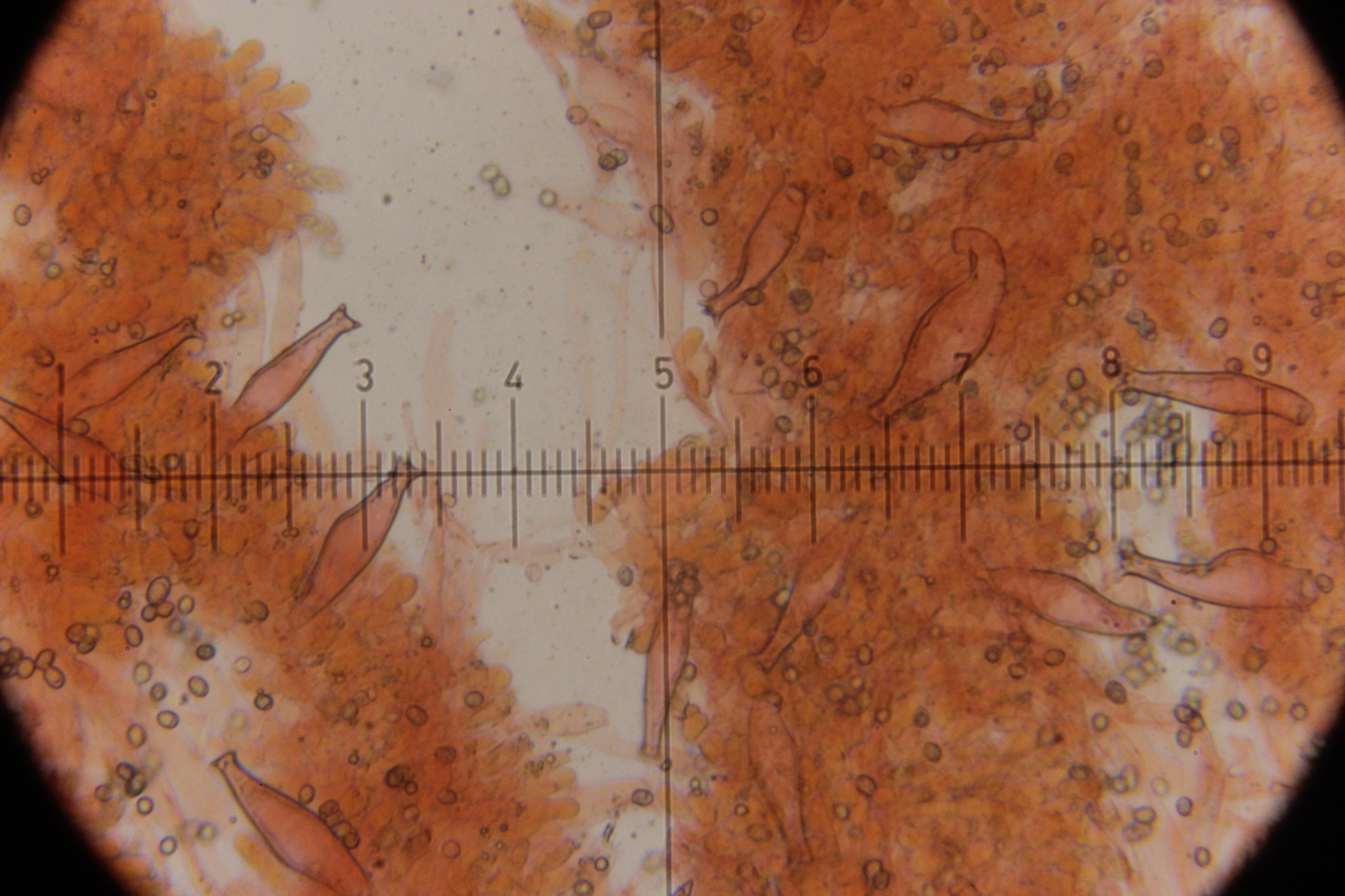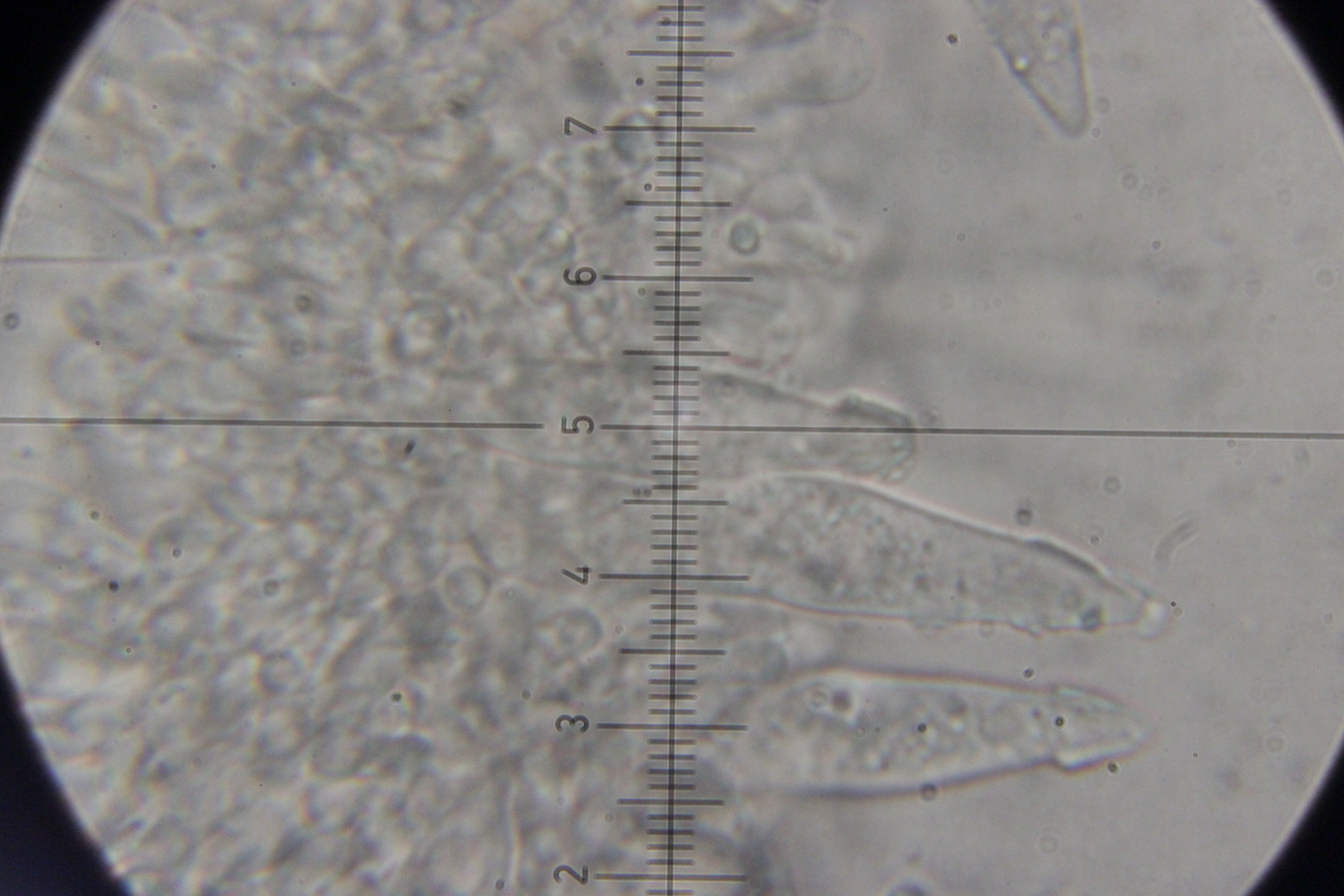 19. Pluteus ohne Schnallen, mit ausschließlich länglichen Zellen in der Huthaut und hakenförmigen Zystiden. Macht insgesamt Pluteus cervinus