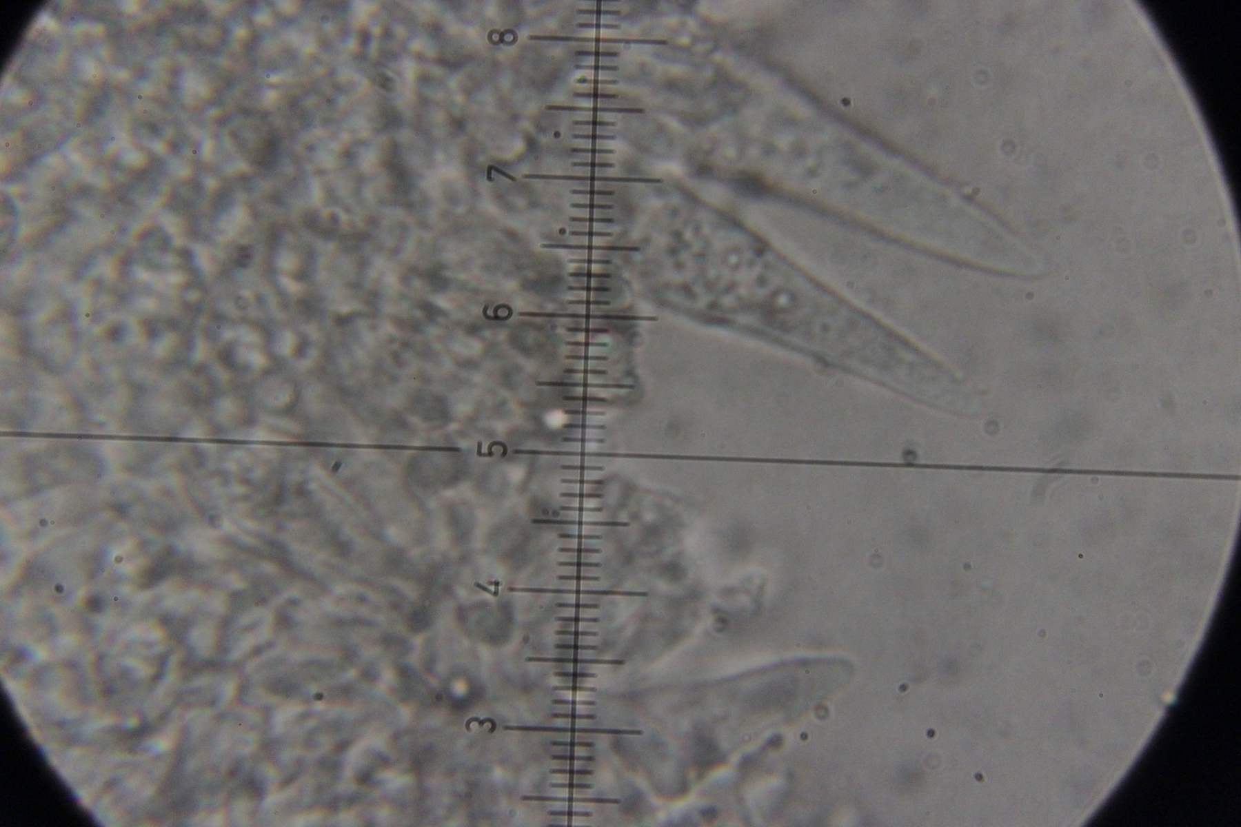 19. Pluteus ohne Schnallen, mit ausschließlich länglichen Zellen in der Huthaut und hakenförmigen Zystiden. Macht insgesamt Pluteus cervinus