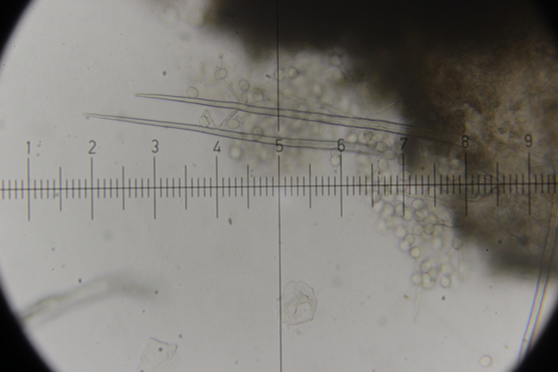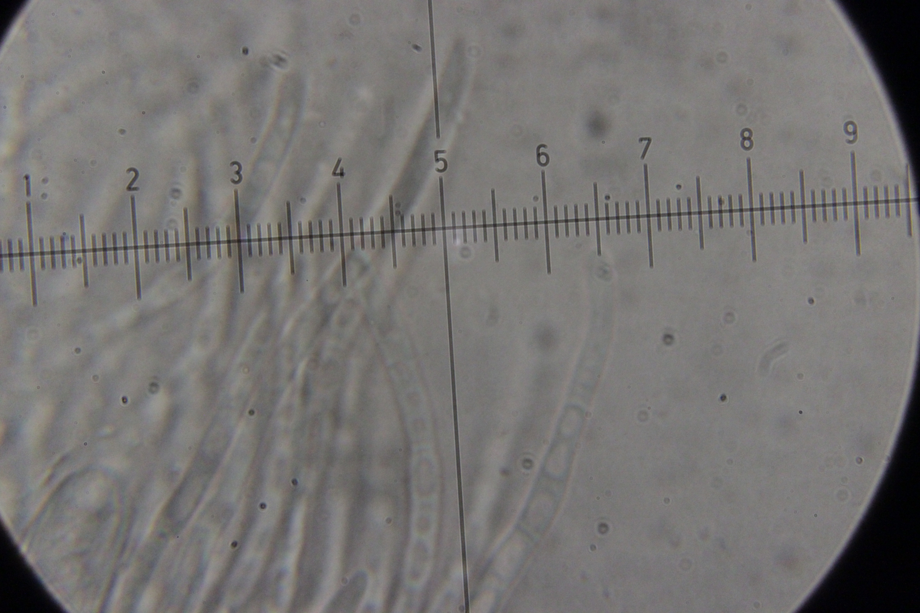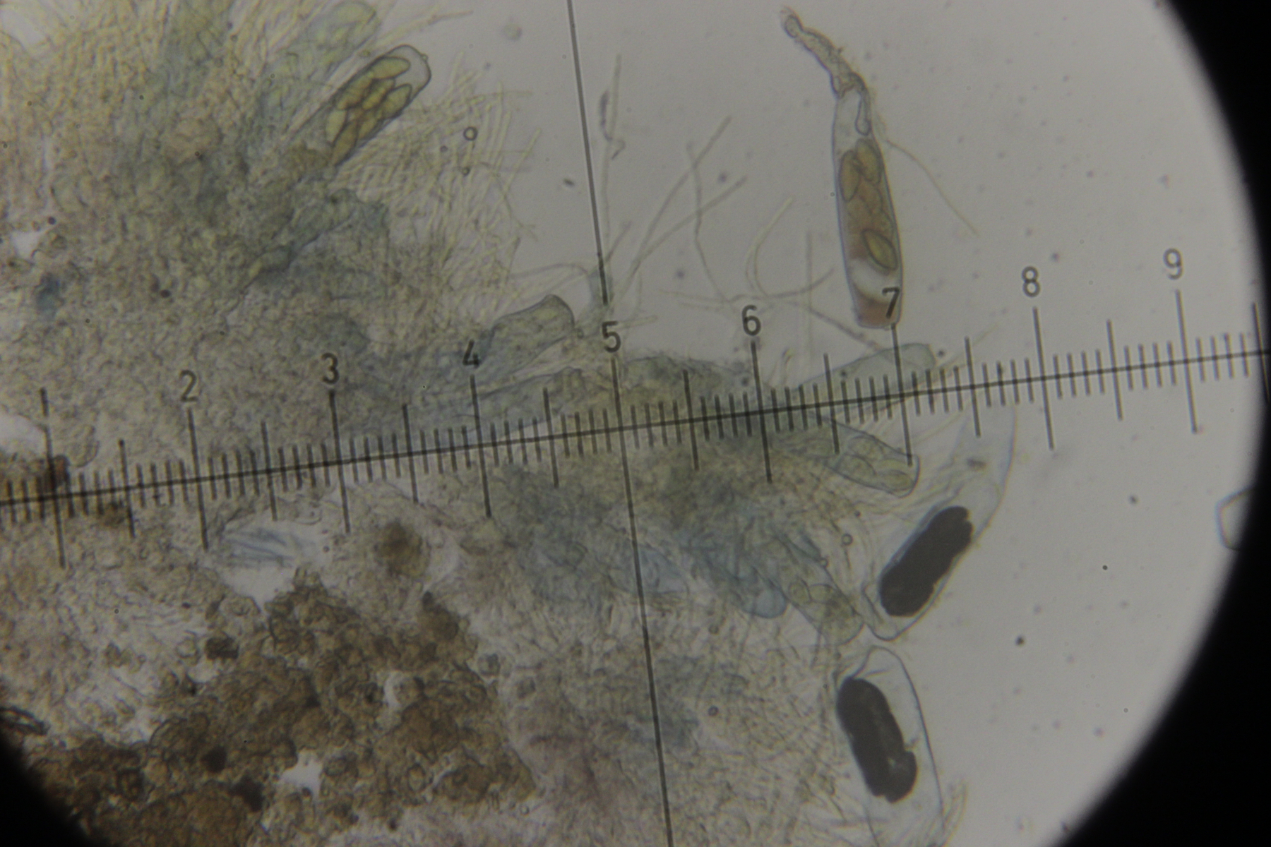 ich hatte meine Funde auch bei Facebook gepostet und da hatte Ralf den ersten ebenfalls als T. zukalii identifiziert. Was den zweiten Pilz angeht, hab ich gerade noch ein Exemplar unters Mikroskop gelegt. Haare oder Setae habe ich dabei nicht entdeckt. Die fadenförmigen Gebilde sehen für mich eher nach Paraphysen aus und sind septiert.