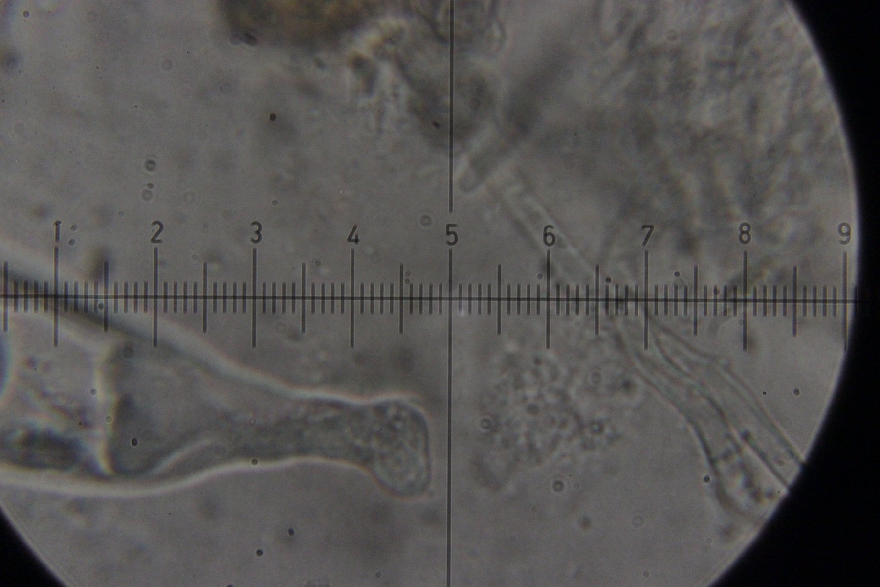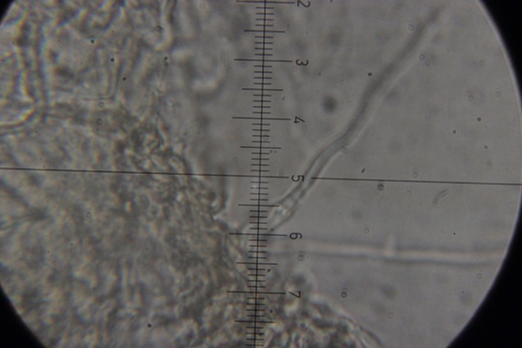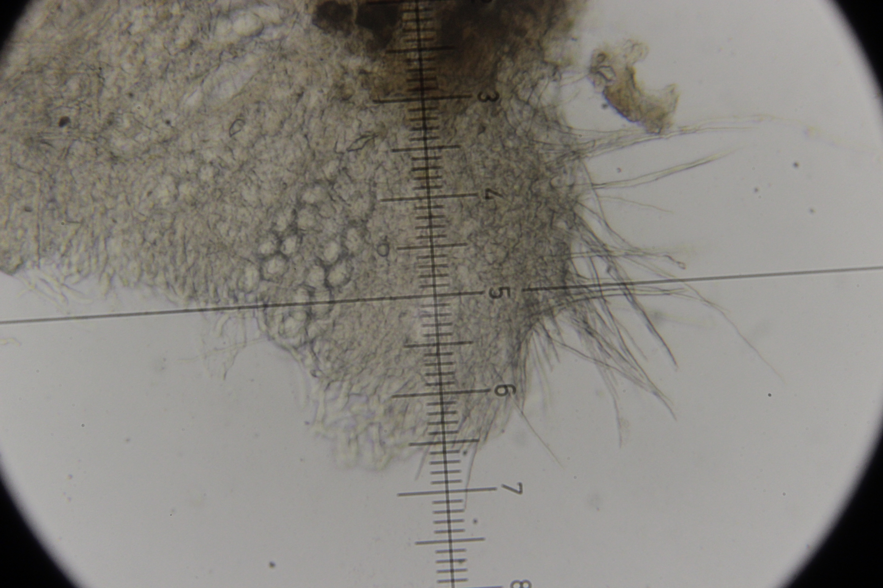 ich hatte meine Funde auch bei Facebook gepostet und da hatte Ralf den ersten ebenfalls als T. zukalii identifiziert. Was den zweiten Pilz angeht, hab ich gerade noch ein Exemplar unters Mikroskop gelegt. Haare oder Setae habe ich dabei nicht entdeckt. Die fadenförmigen Gebilde sehen für mich eher nach Paraphysen aus und sind septiert.