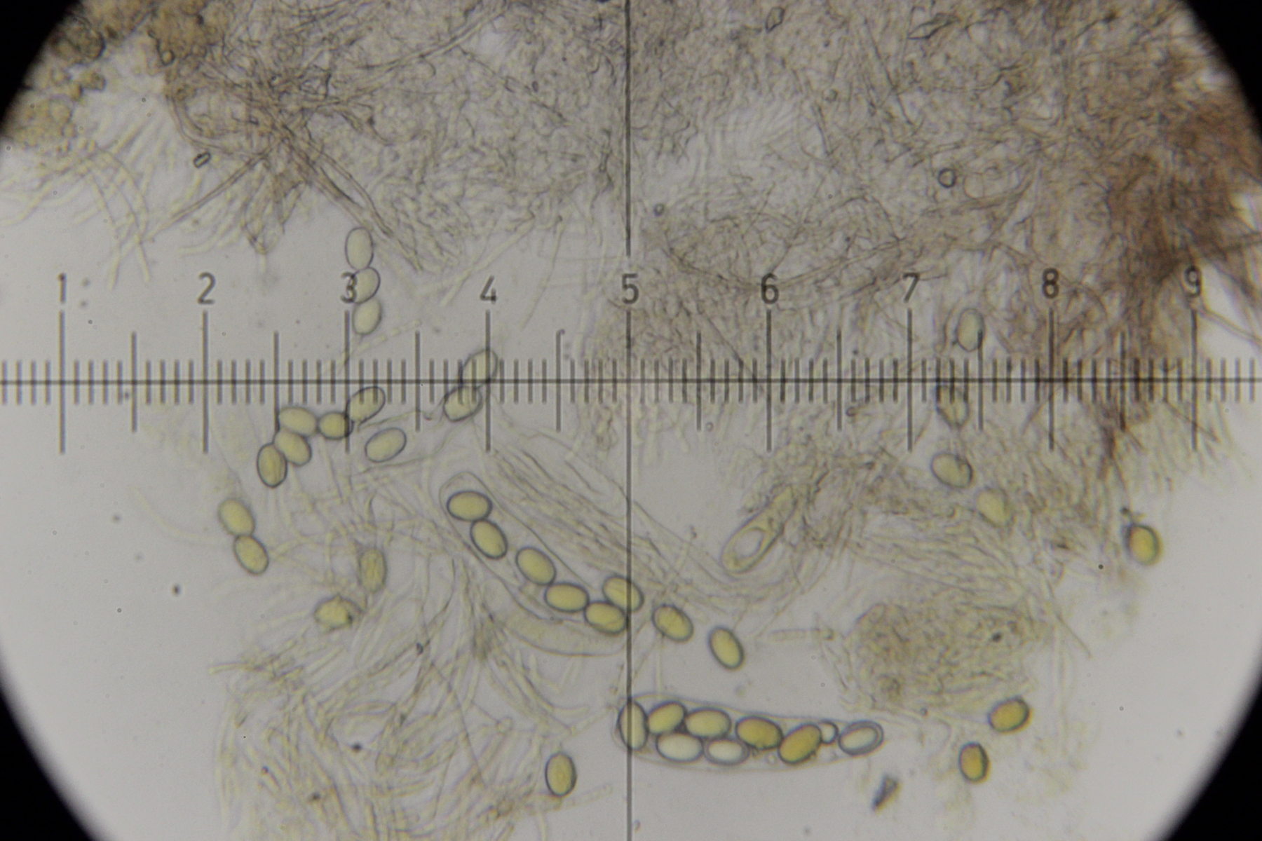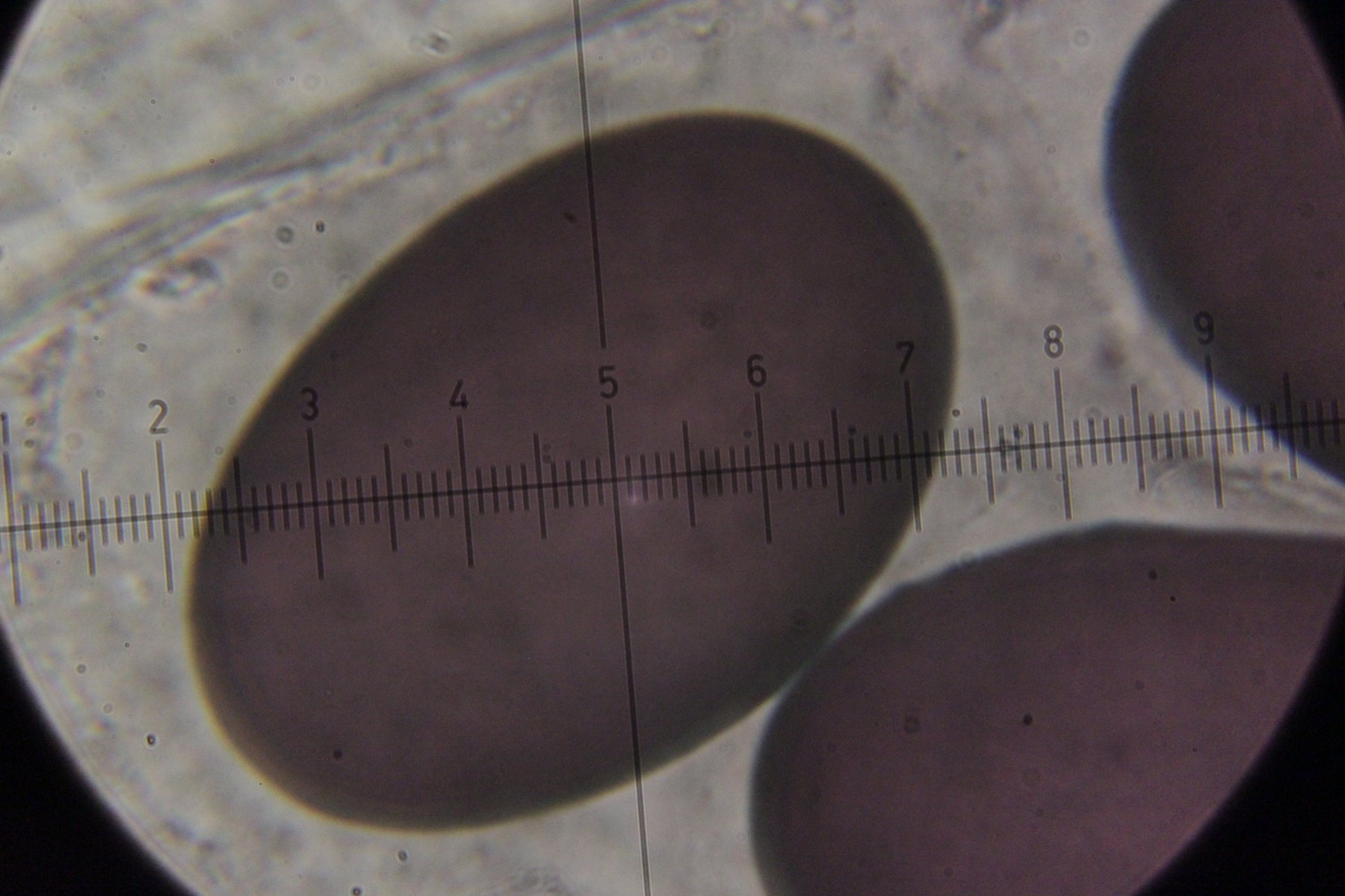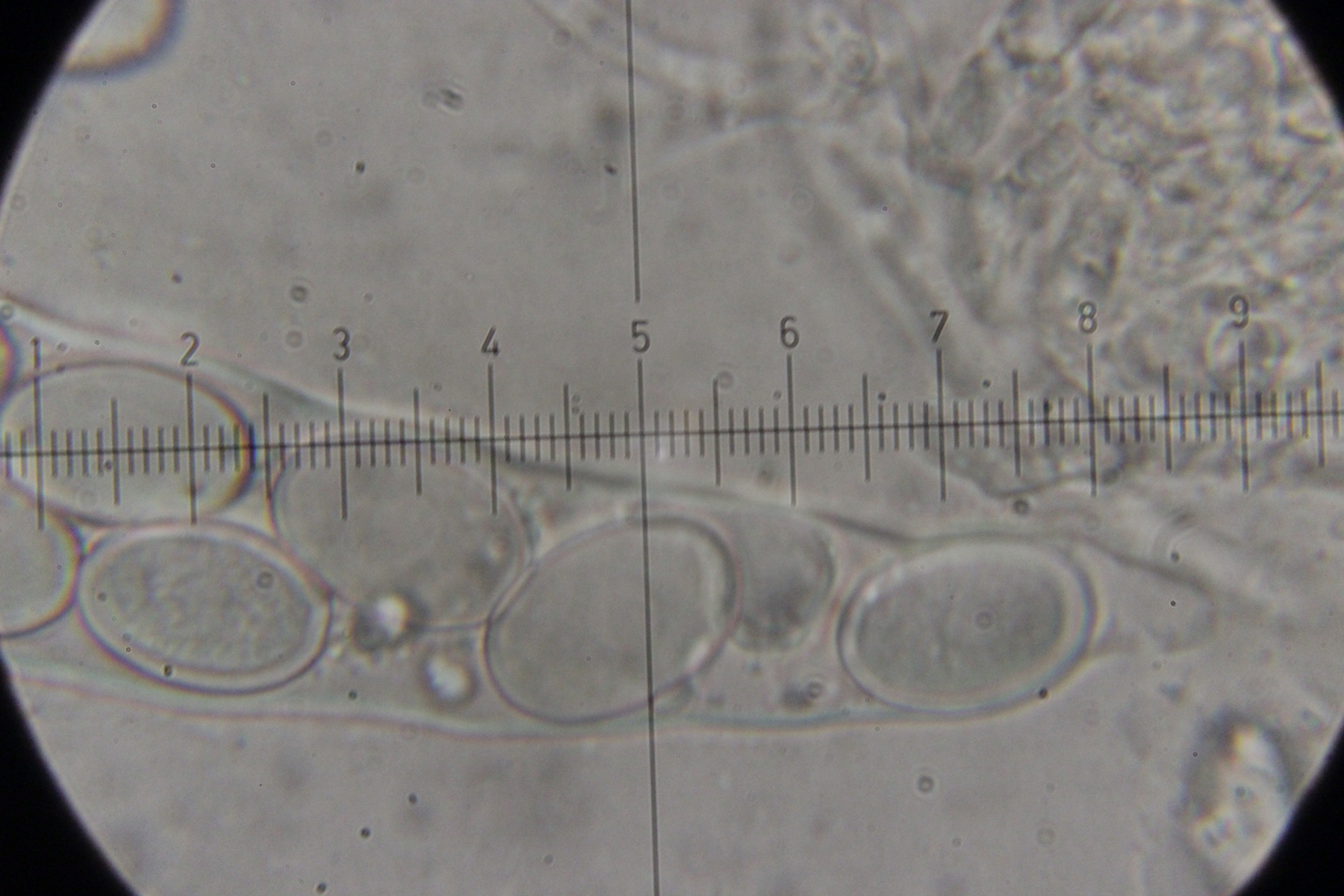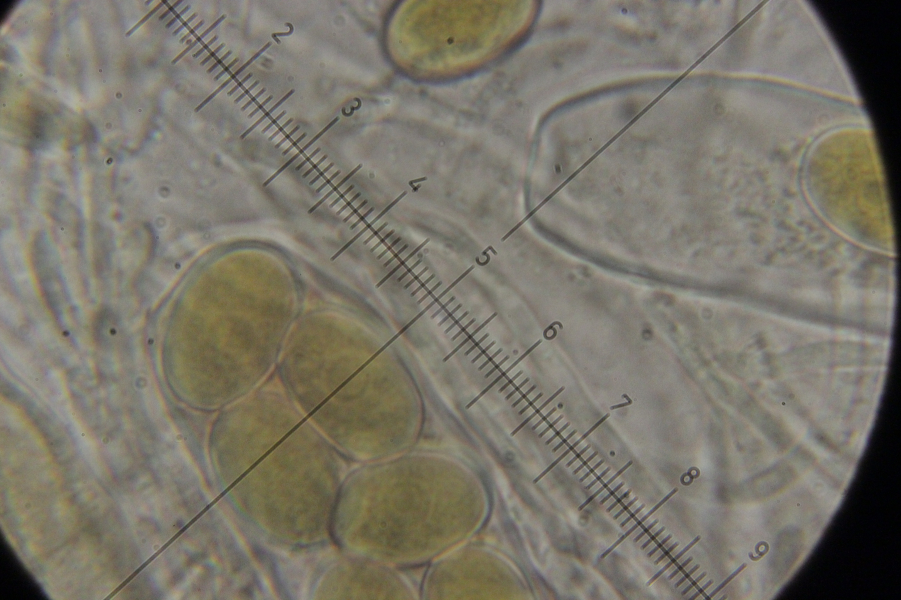 Das sollte Trichobolus zukalii sein. Sporengröße (10.7+-0.7) µm x (9.3+-0.4) µm, Q=1.15+-0.04