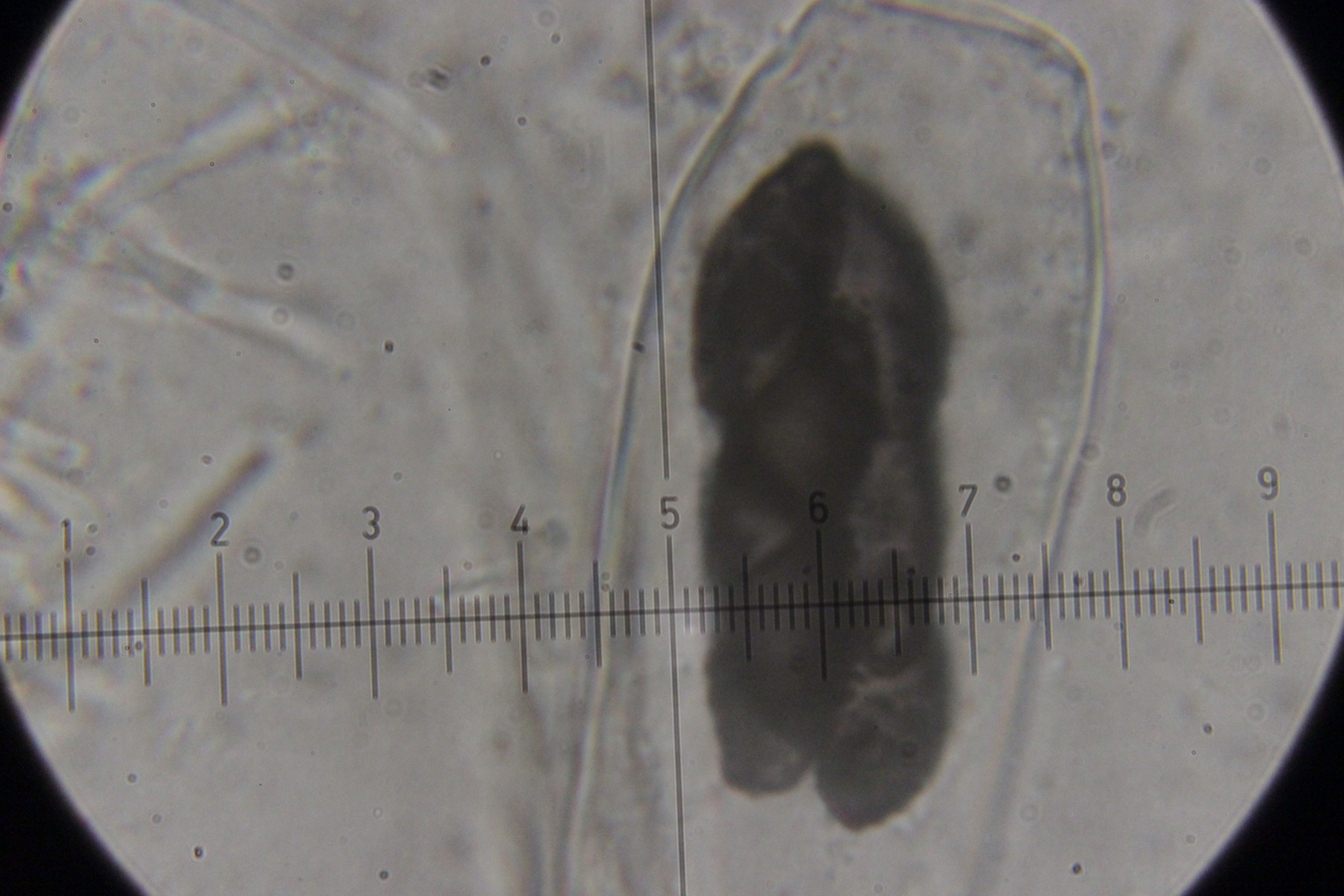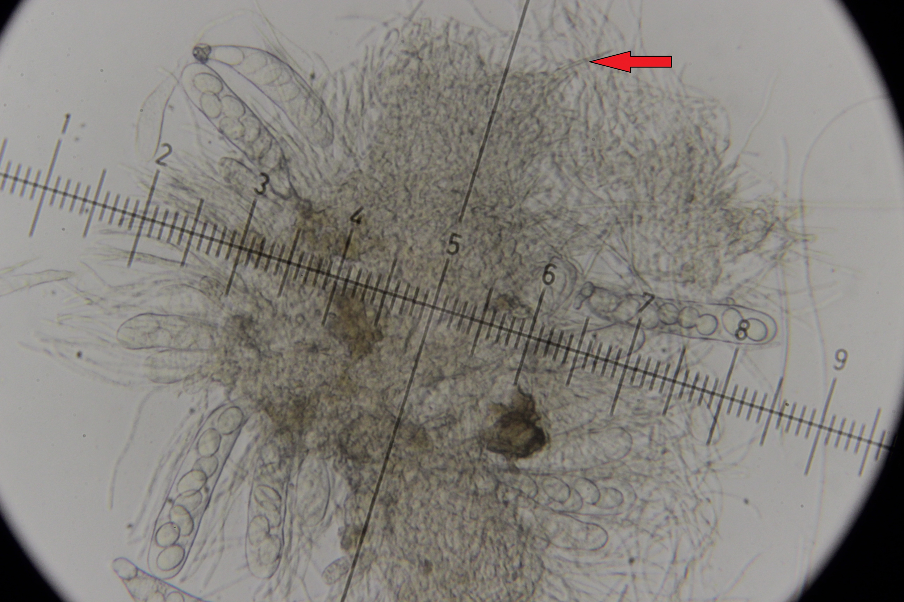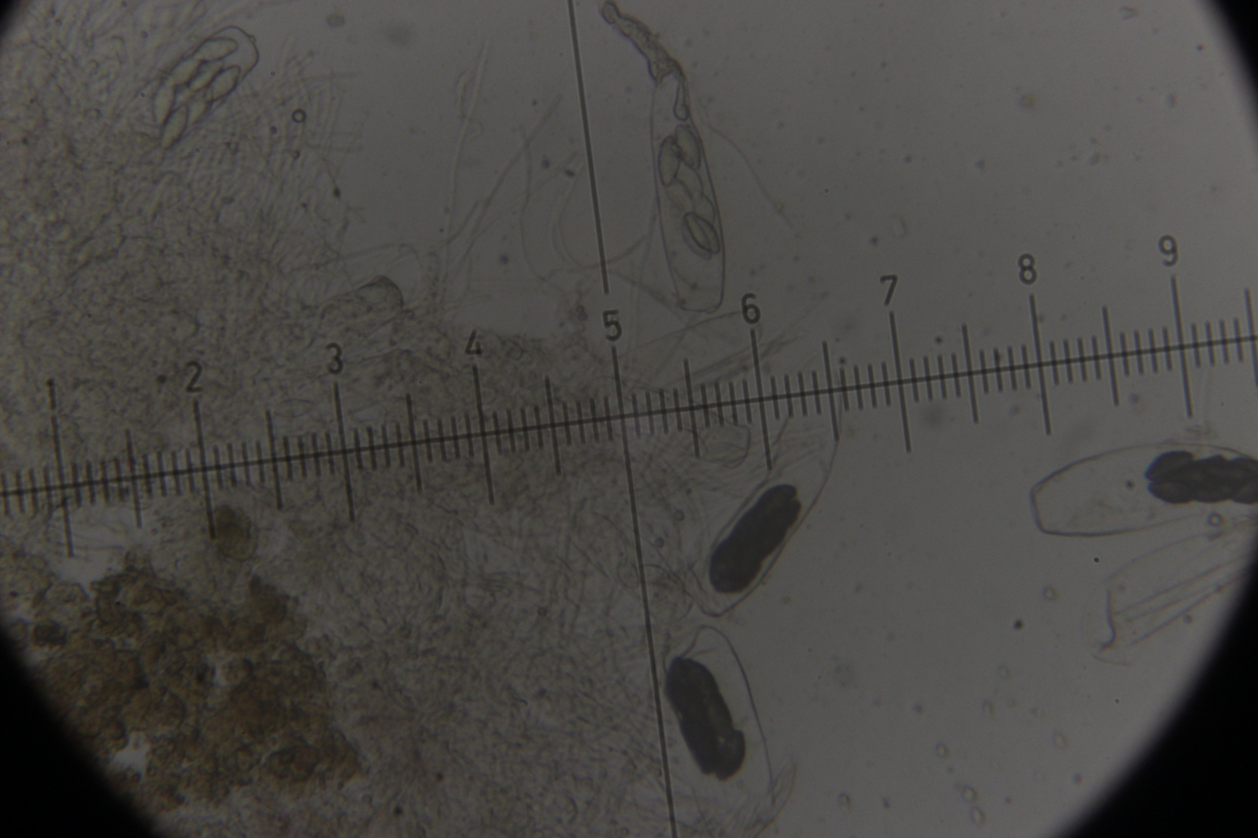 Asci sieht man nur selten, da die Art nur einen hat und dieser beim Präparieren oft zerquetscht wird.