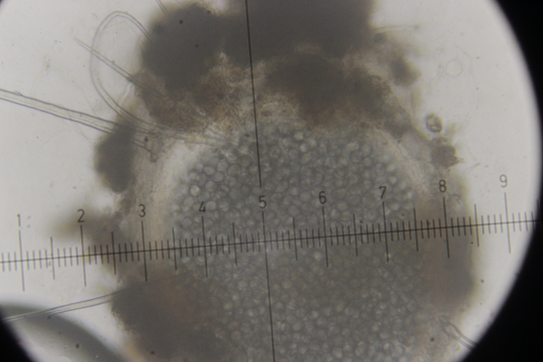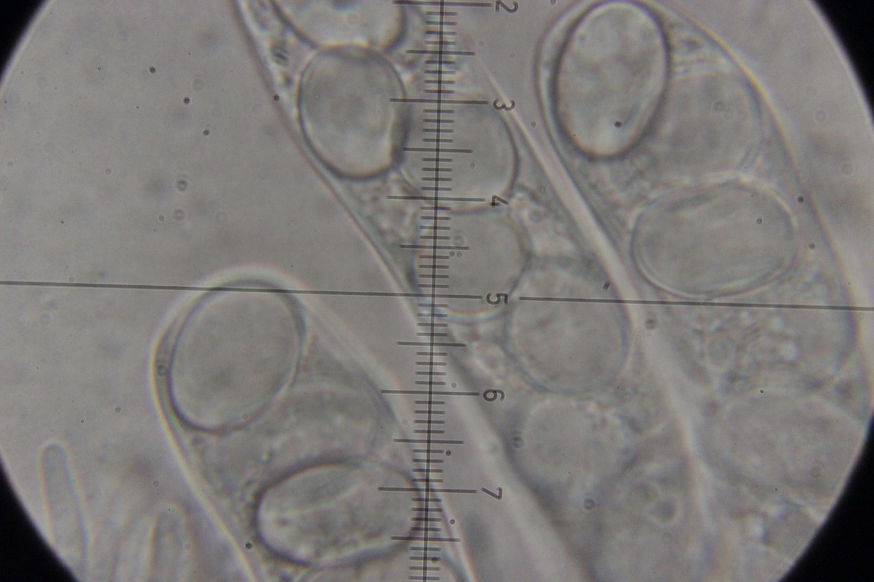 Mit Lugol gab es keine Blaureaktion der Asci, aber die Sporen färbten sich hübsch orange-braun
