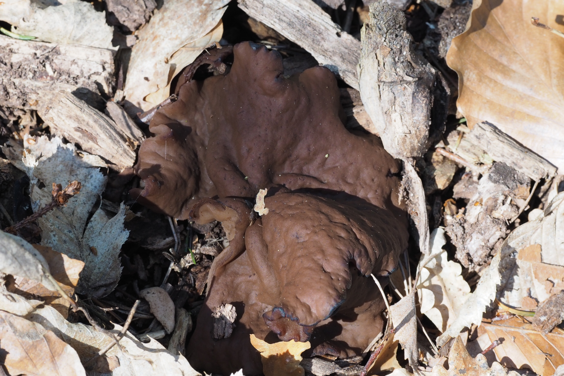An alt bekannter Stelle fand ich heute über 80 Scheibenlorcheln, die Christoph letztes Jahr als Gyromitra perlata bestimmt hat.
