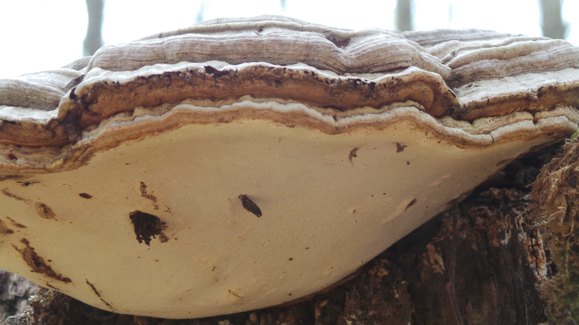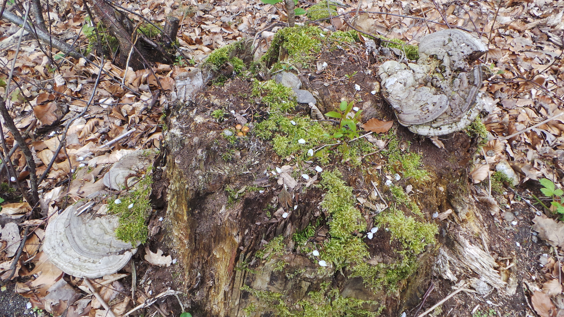 9, 10 : Auf dem Stumpf mit den Porlingen wuchs dann noch was Kleines, für mich typische "KeineAhnungPilze"