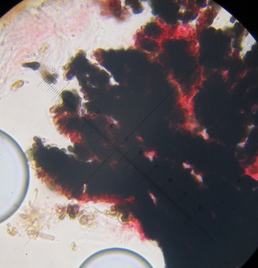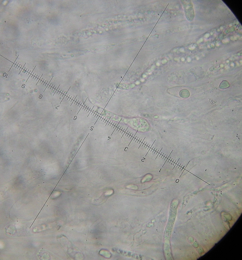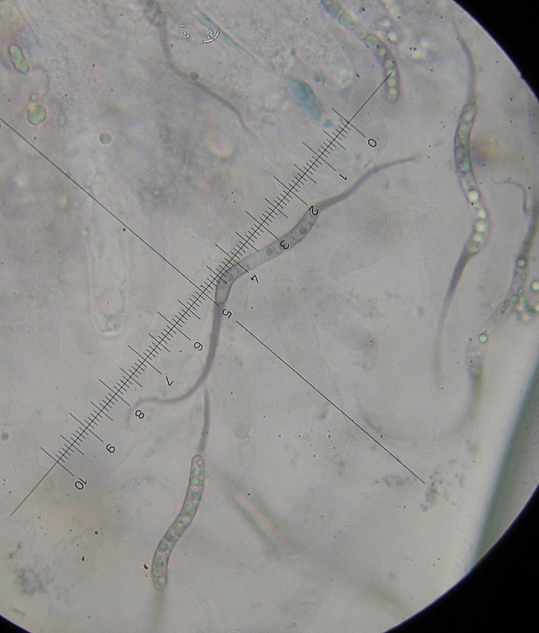 Sporen unreif zylindrisch, s-förmig gebogen, hyalin ,+/- einreihig multiguttulat, 30-38 x 4µ mit bis zu 25 µ langen, spitzen Anhängseln je Pol.